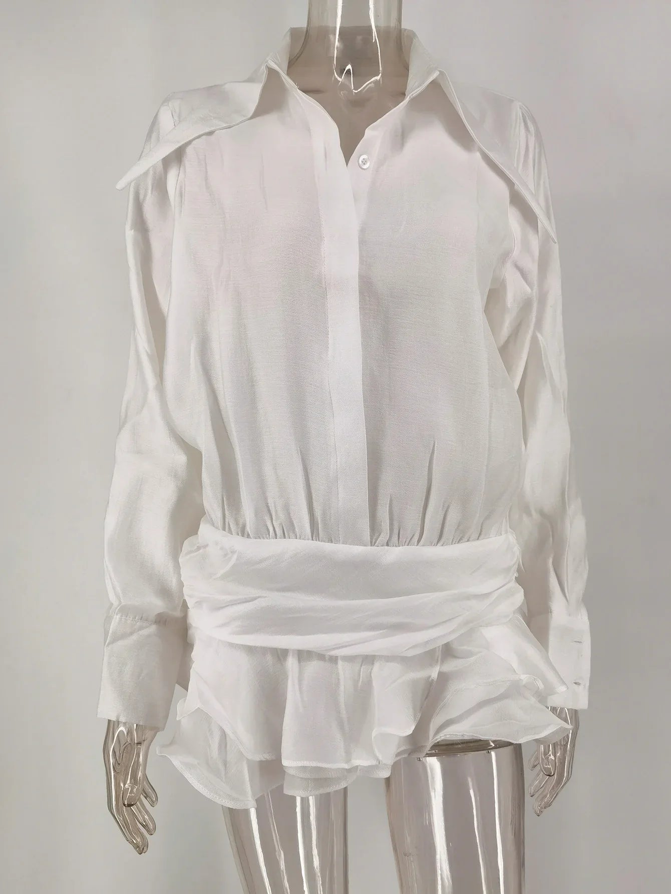 qgtao Sexy See through chiffon White summer dress women 2024 elegant party Shirt dress new birthday evening midi short dresses vestido