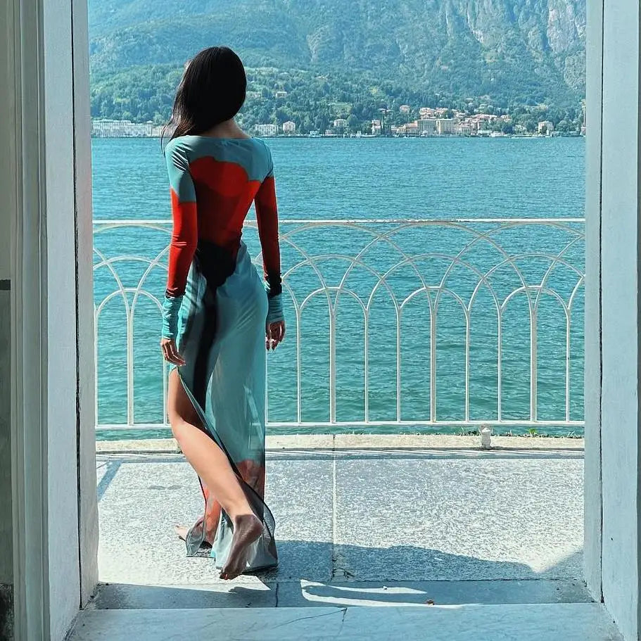 qgtao聽Sexy Women鈥檚 Slim Fit Long Dress Cover-Ups Sheer Mesh Long Sleeve Floral Print Beach Dress Side Split Bikini Cover-Ups 2024