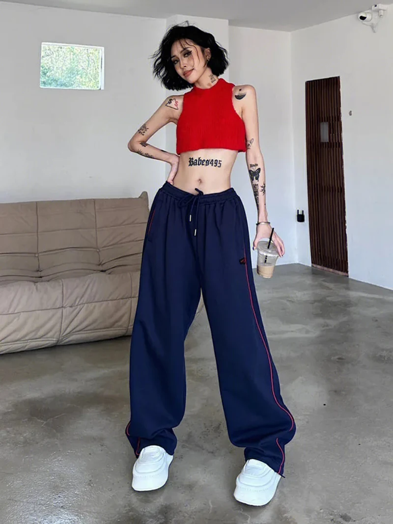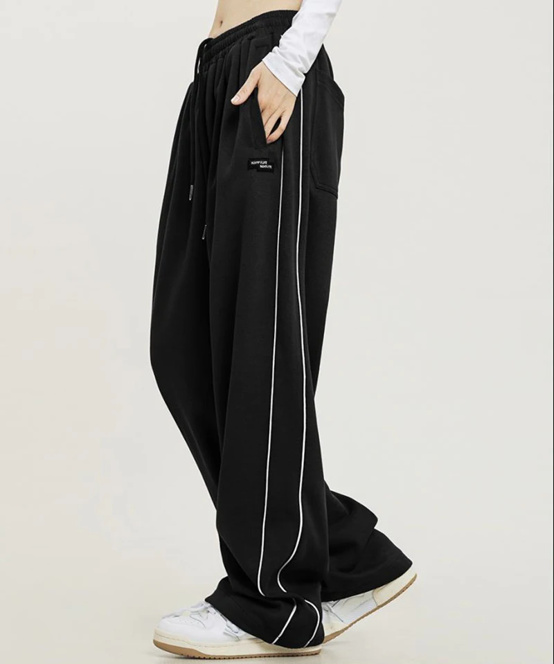 qgtao Vintage Baggy Jogging Striped Sweatpants Women Y2k Harajuku High Street Sport Pants Elastic Waist Straight Casual Trousers