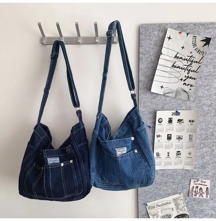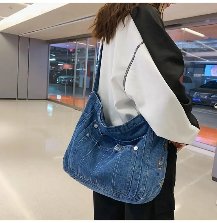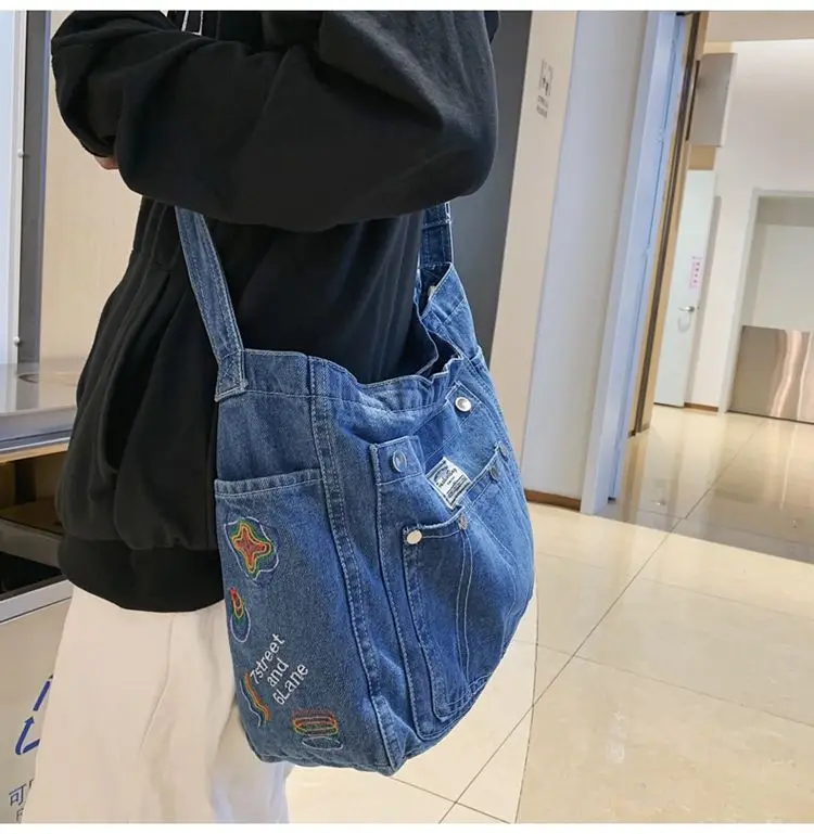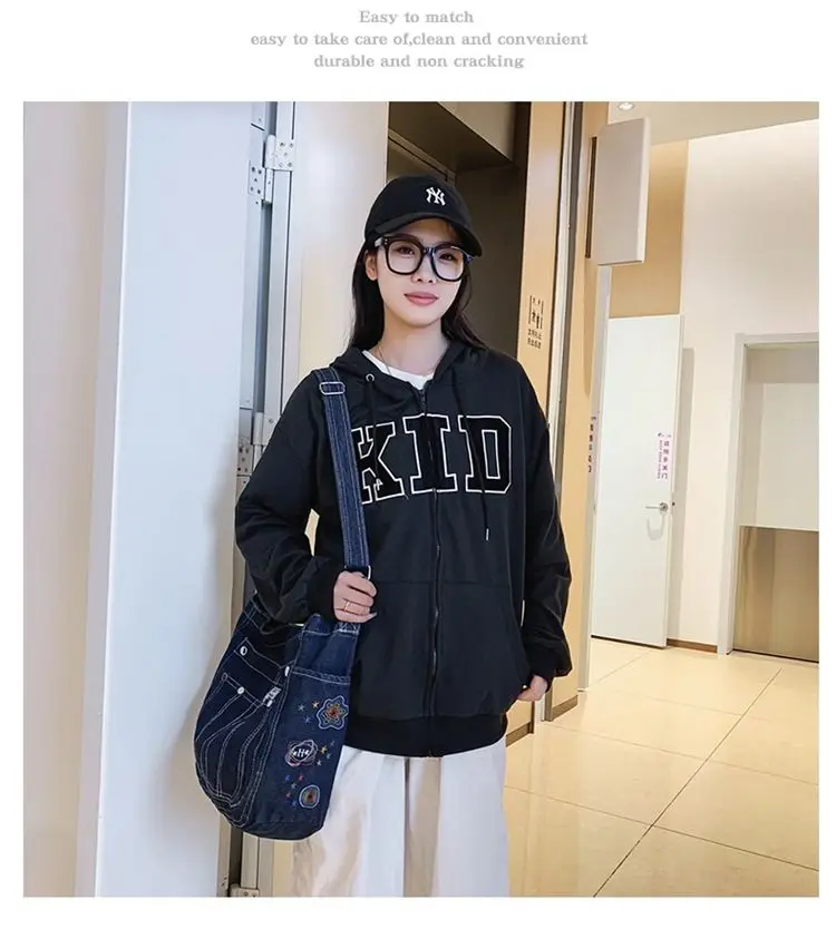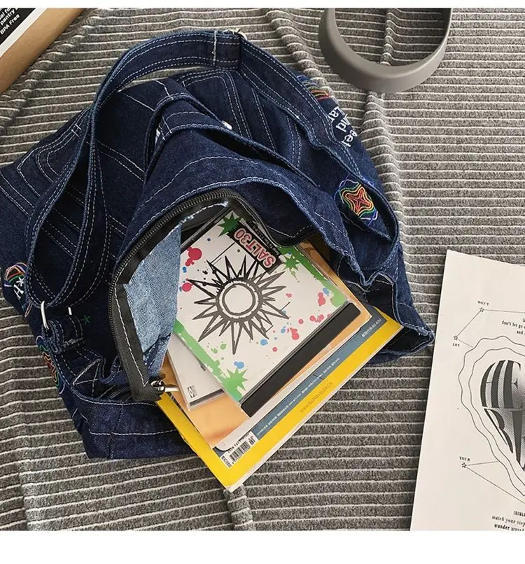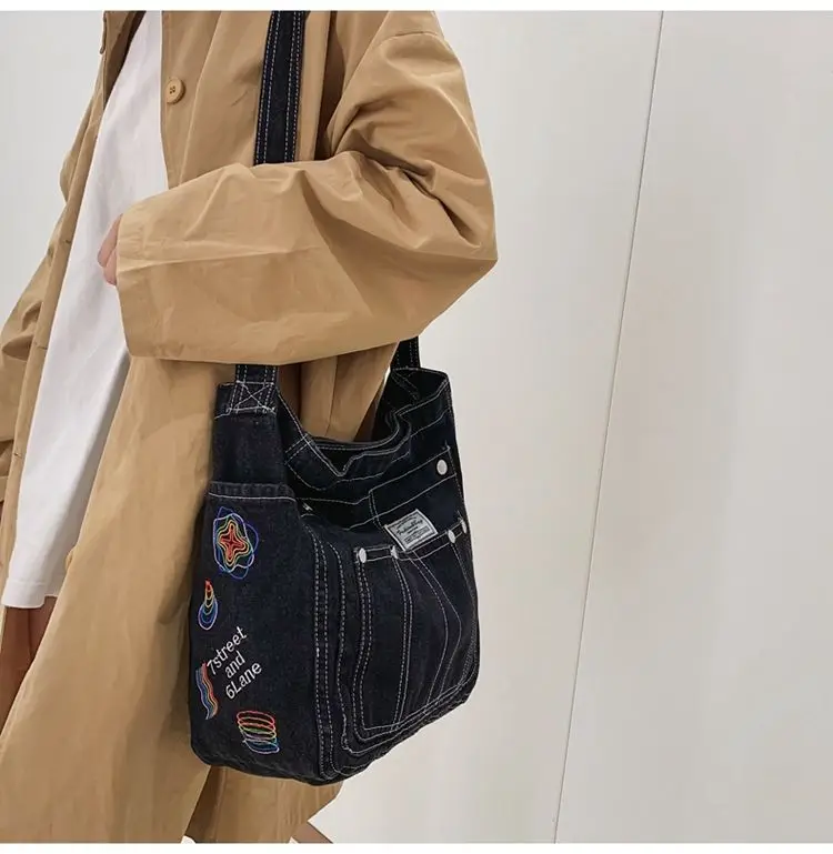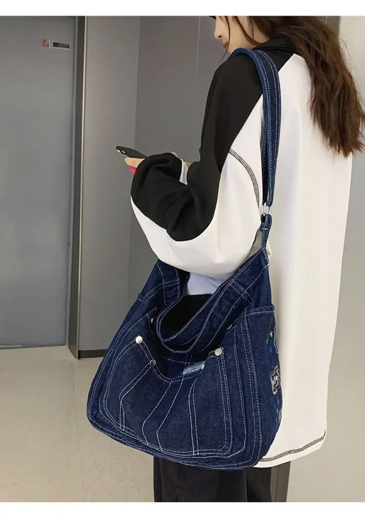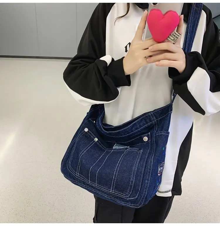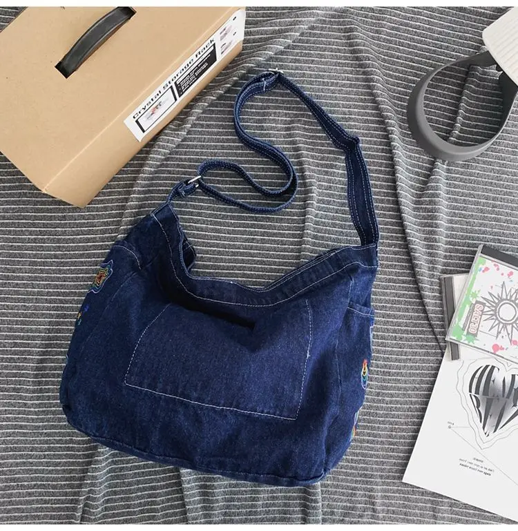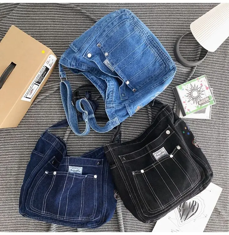 qgtao Vintage Denim Handbag Women Retro Grunge Print Punk Casual Crossbody Bags Female Harajuku Y2k Messenger Bag Aesthetic