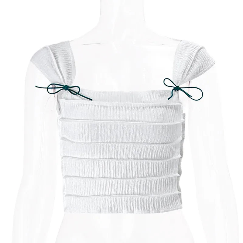 qgtao - Y2K Cute Bow Lace Up Crop Top Aesthetic Texture Square-neck Sleeveless T Shirt Summer Women Streetwear Slim Tees
