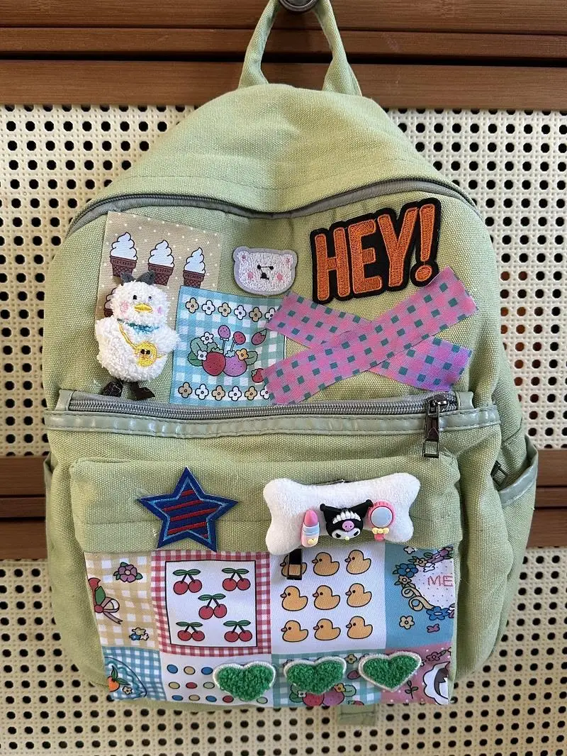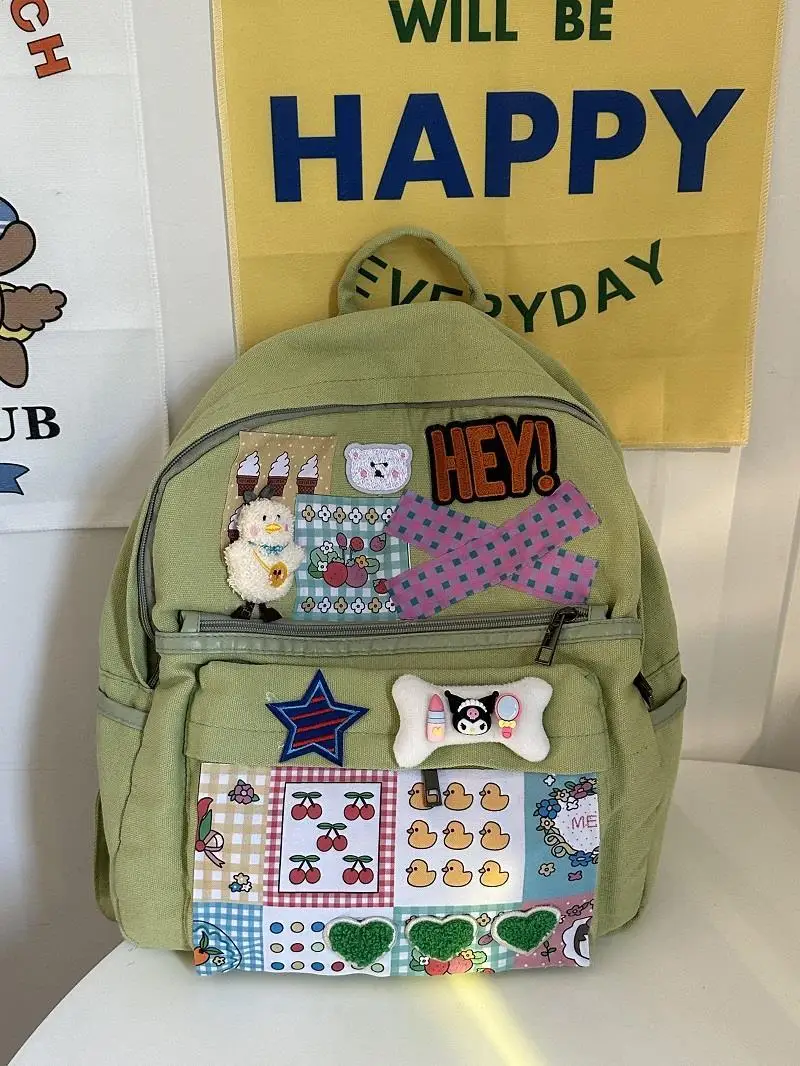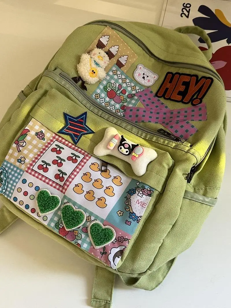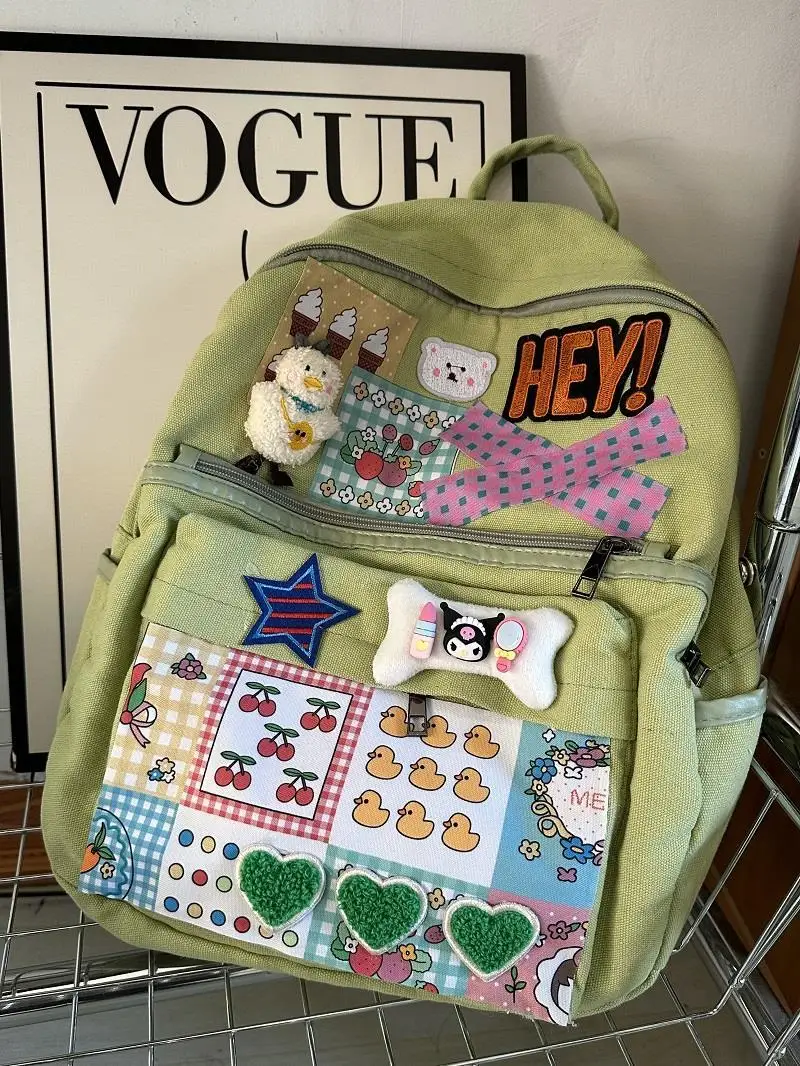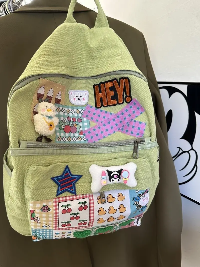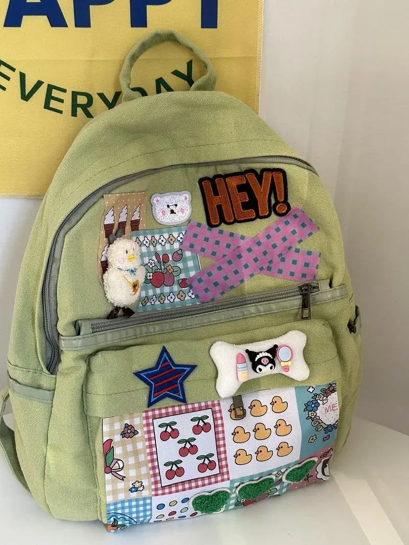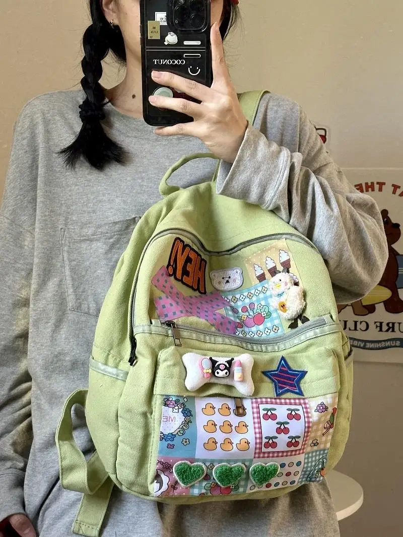 qgtao Y2k Kuromi Womens Backpack Canvas Patchwork Vintage Fashion University Backpack Large Capacity Casual Harajuku Students Bag