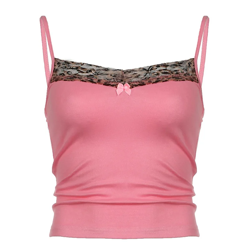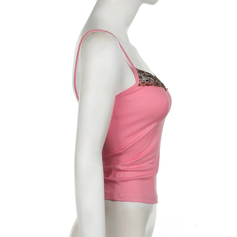 qgtao Y2K Leopard Collar Pink Camisole Women Animal Print Vintage Coquette Sleeveless Knitted Cute Sexy Crop Top Summer Vest