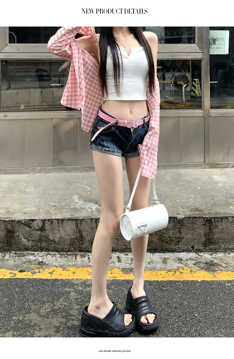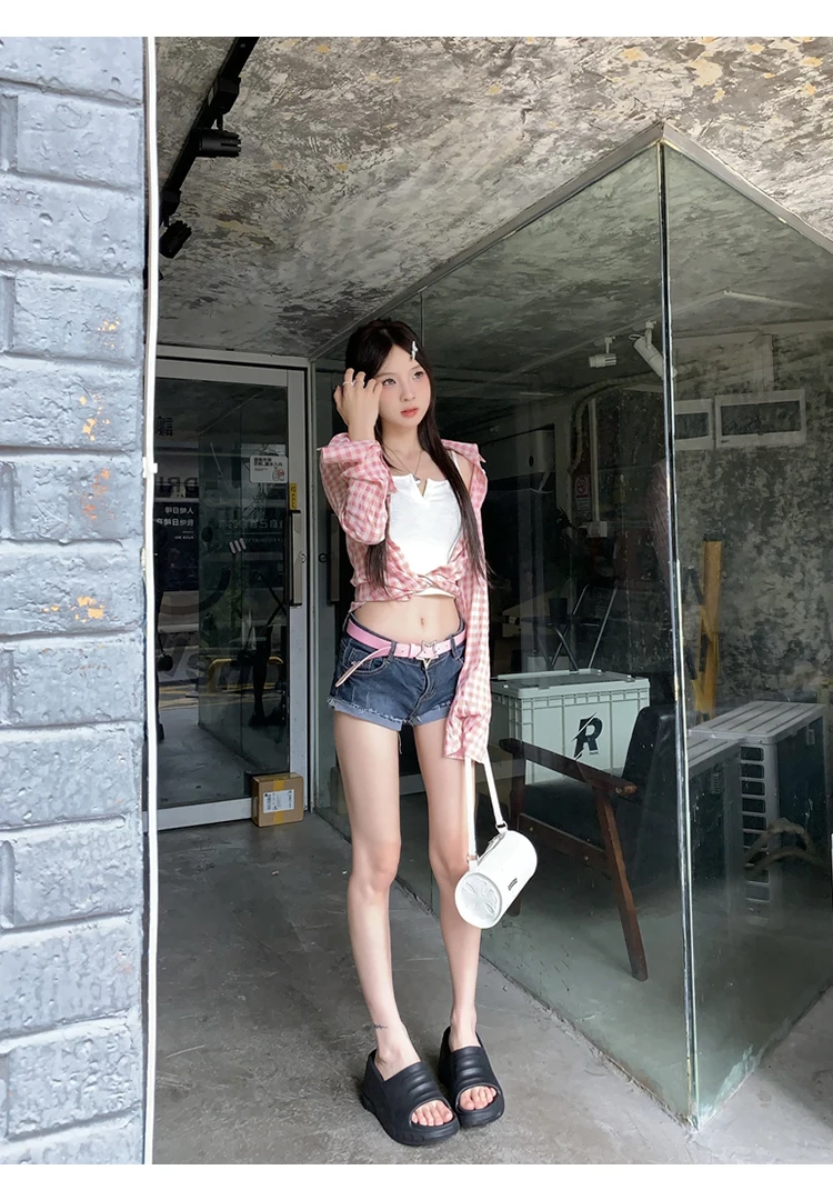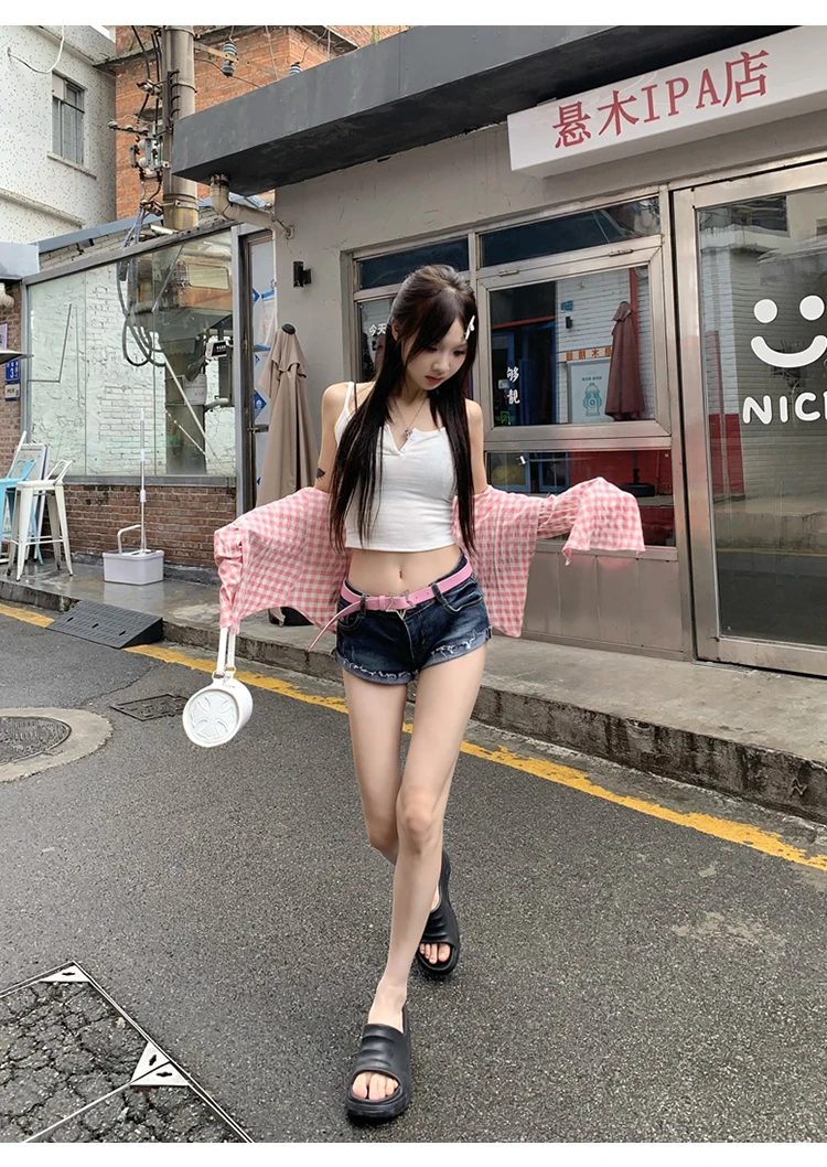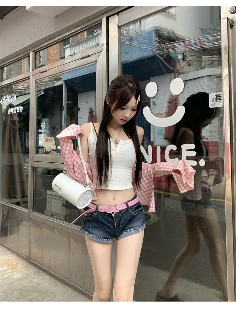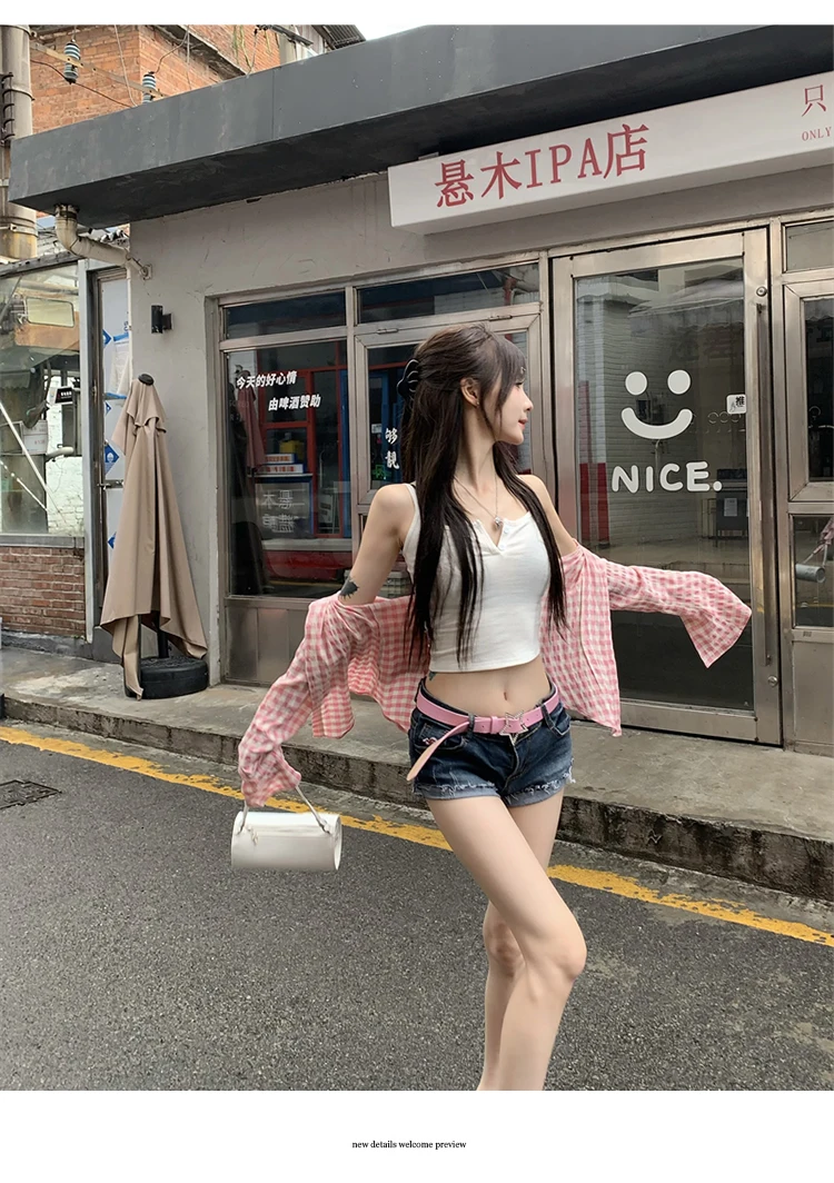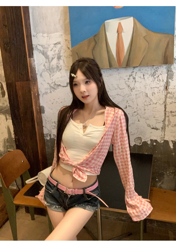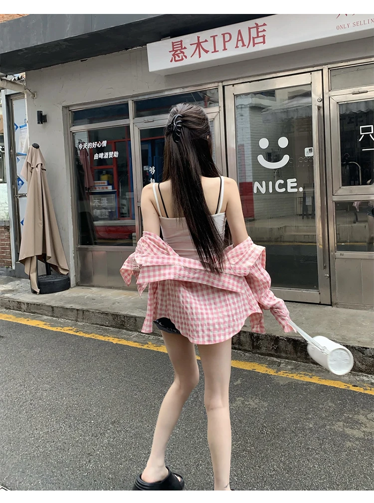 qgtao - Y2k Pink Plaid Women Shirts Check Graphic Long Sleeve Blouses Female Spring Autumn Sexy Slim Button Up Cardigan Chic Ins