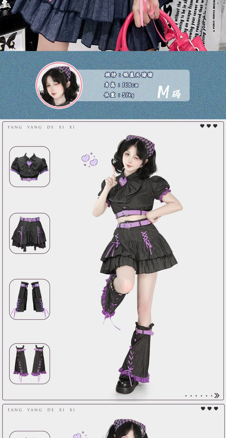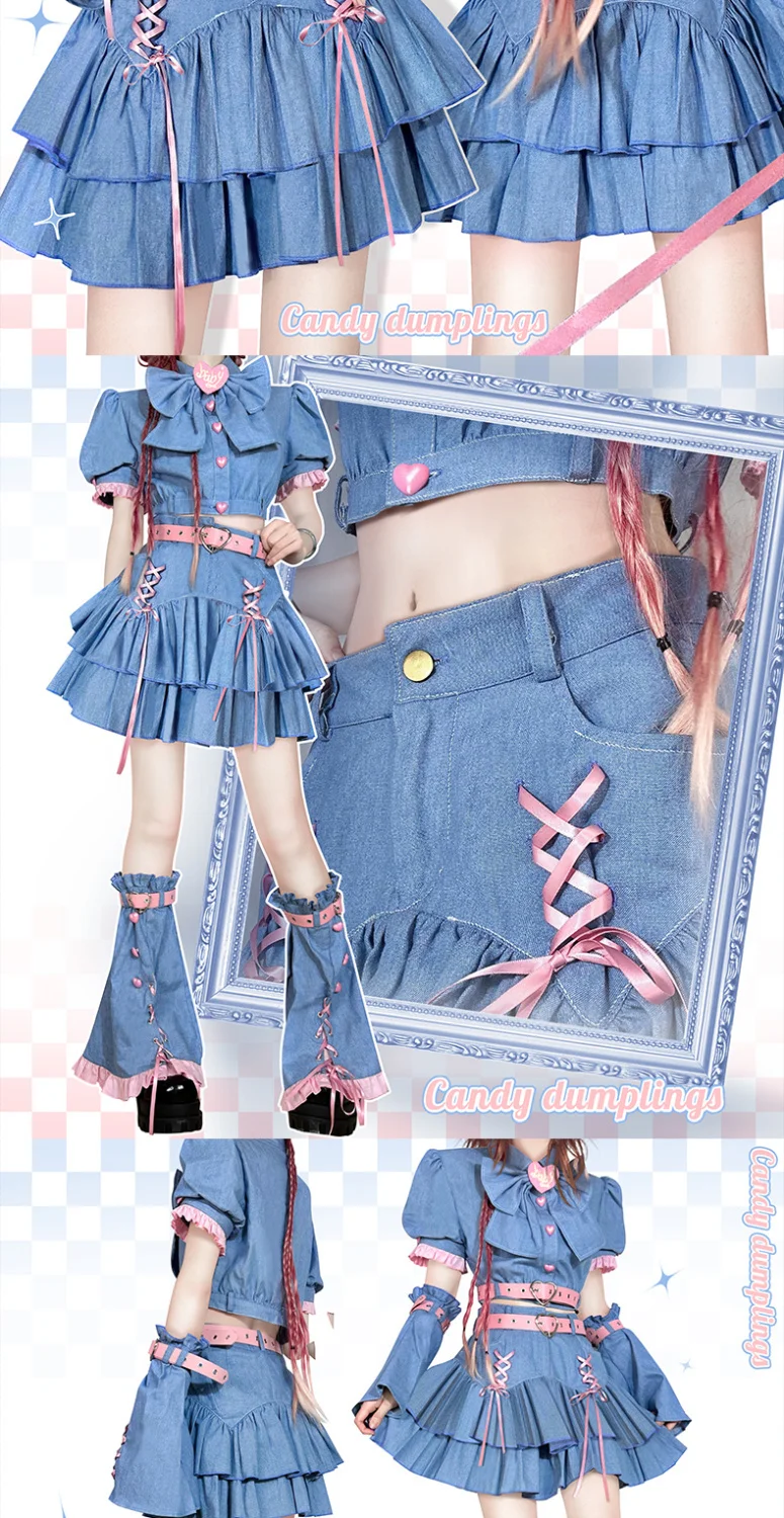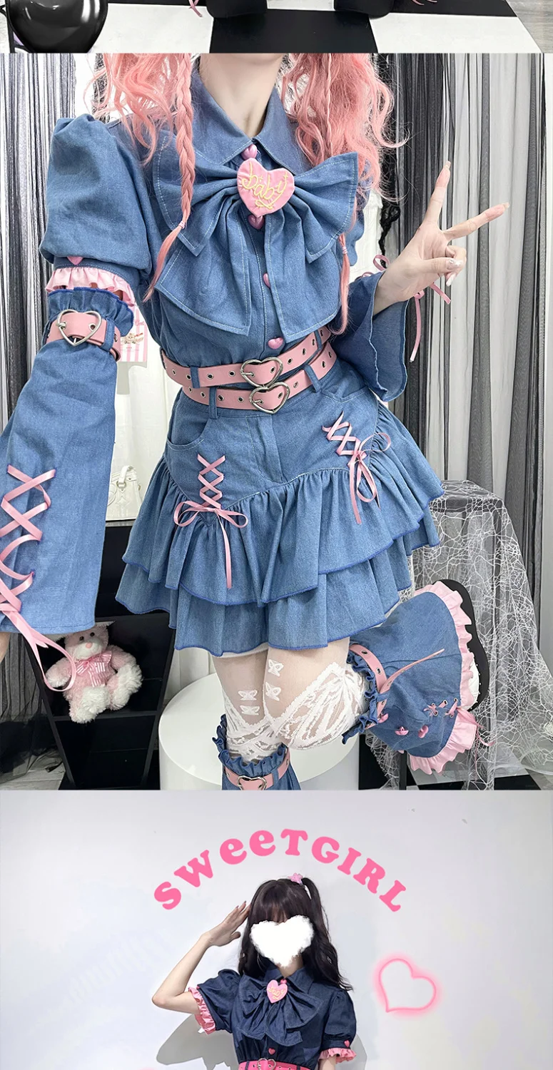 qgtao Y2K Set Sweetheart Spicy Girl dress skirt sets Women's 2024 Summer Bubble Sleeve Bowtie Campus Style 2 piece sets womens outfits