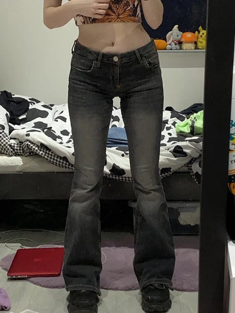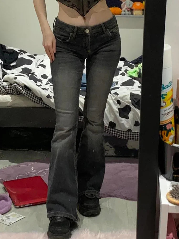 qgtao Y2K Tie Dye Flare Jeans Vintage Strecthy Low Waisted Pants Women Grunge Basic Korean Mom Jeans Casual Streetwear2000s