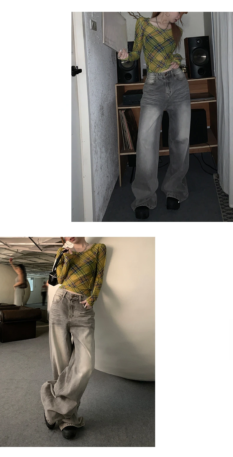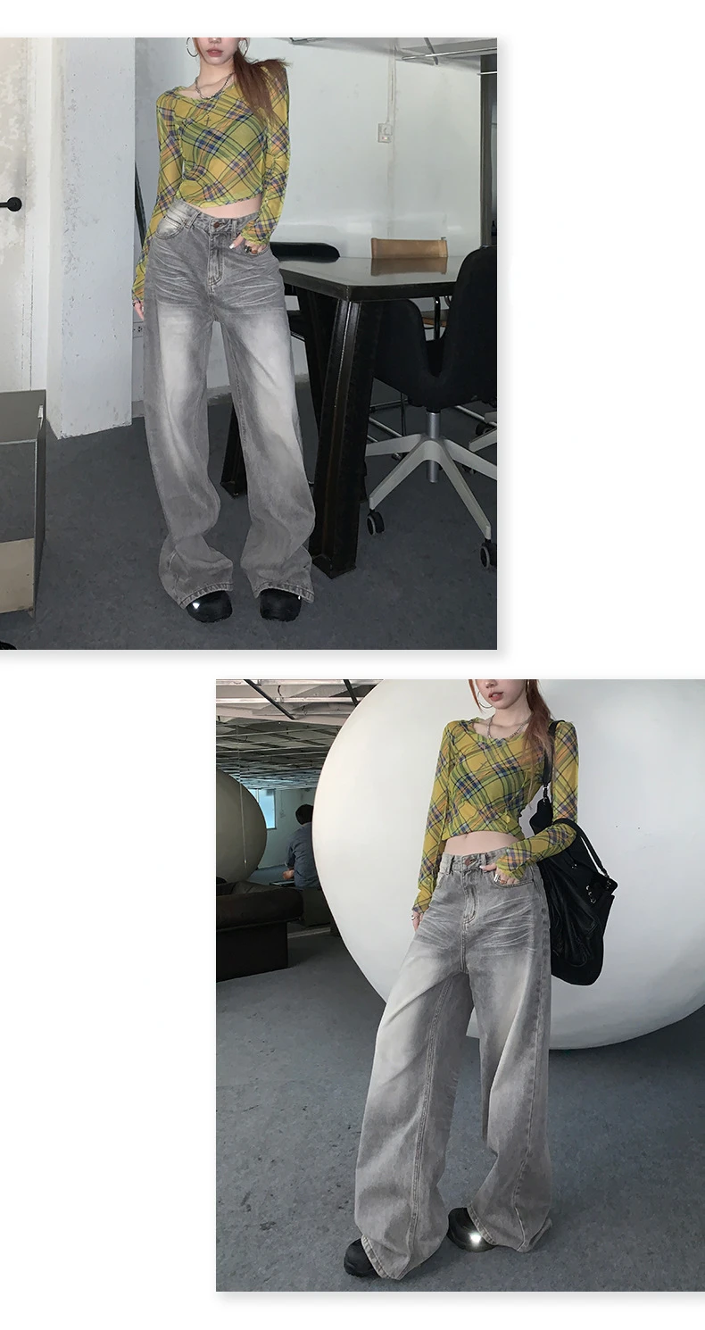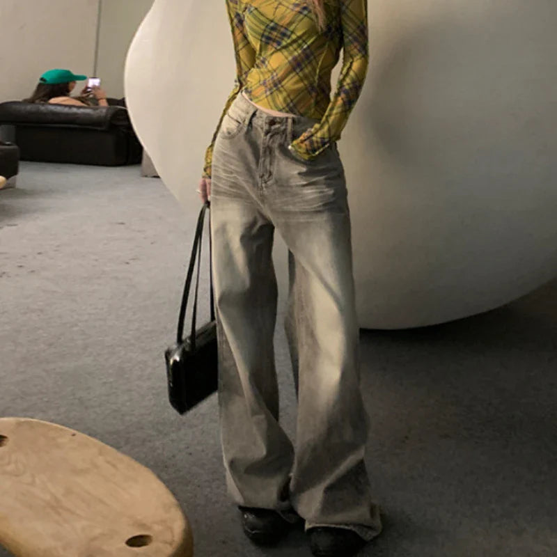 qgtao Y2k Vintage Jeans Women High Waist Baggy Straight Casual Wide Leg Pants Streetwear Fashion Distressed Loose Denim Trousers