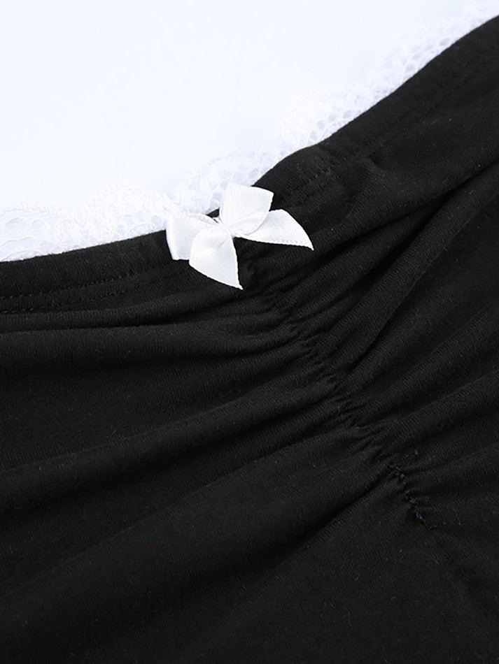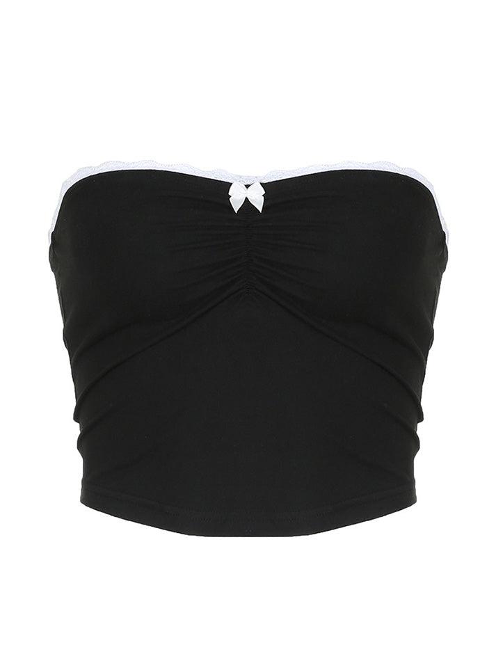 Ruffled Bow Lace Patchwork Solid Colour Tube Top