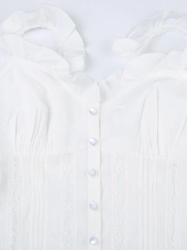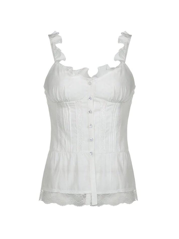 Ruffled Lace Stitching White Tank Top