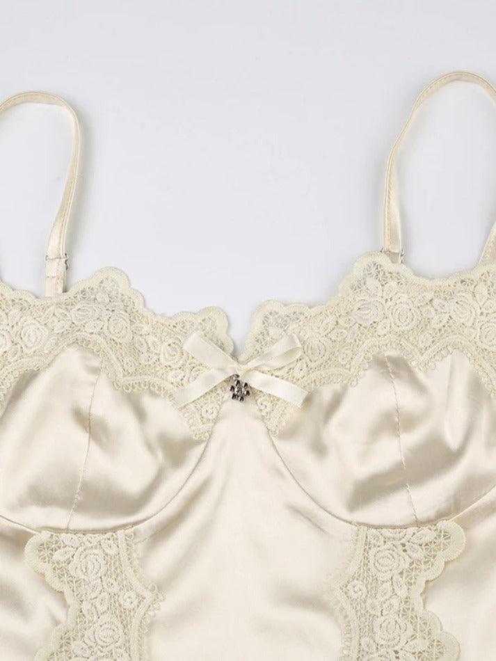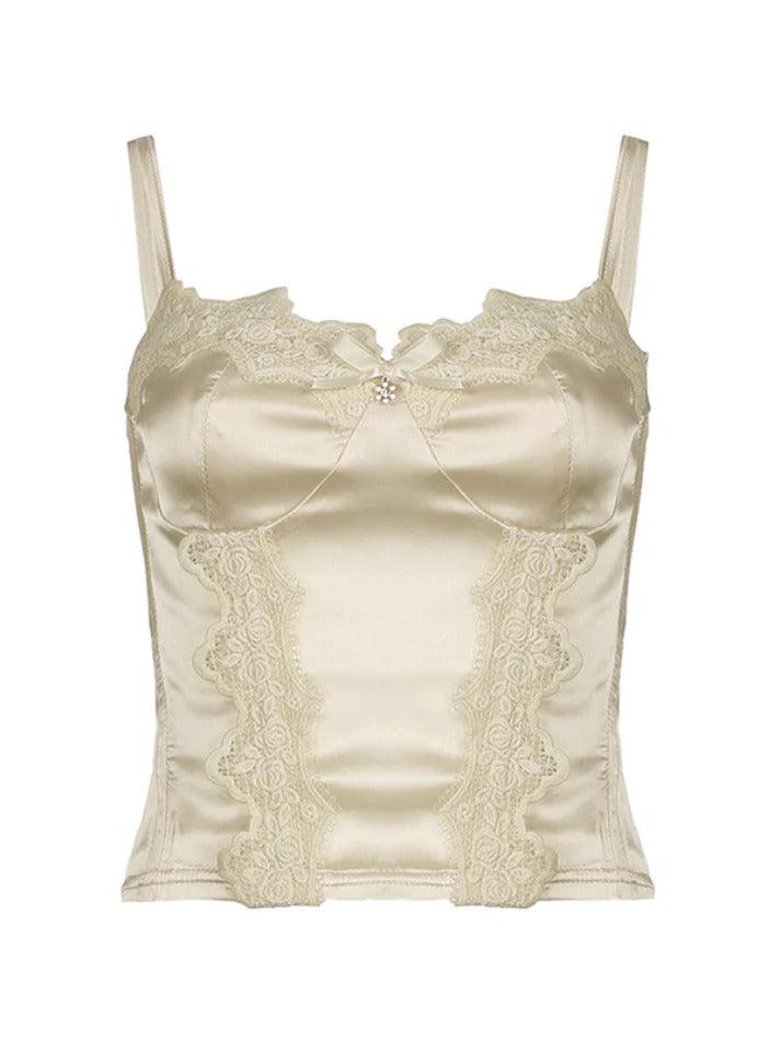 Satin Guipure Lace Splice Cami Top
