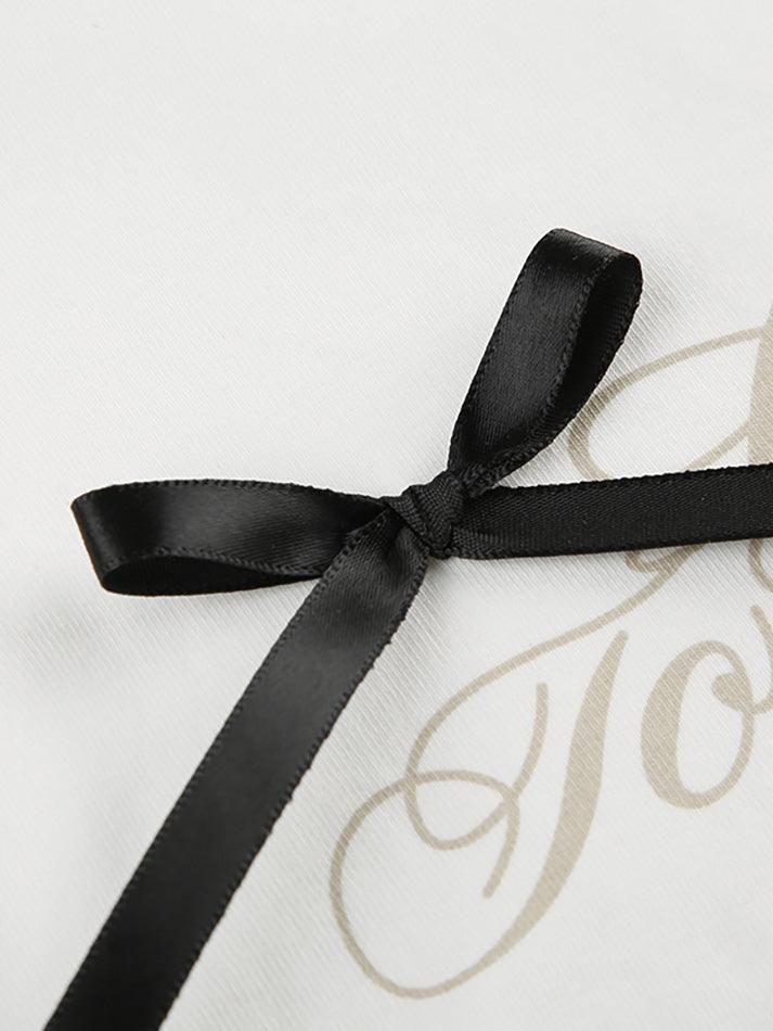 Short-Sleeve Crew Neck Lettering Bow T-Shirt