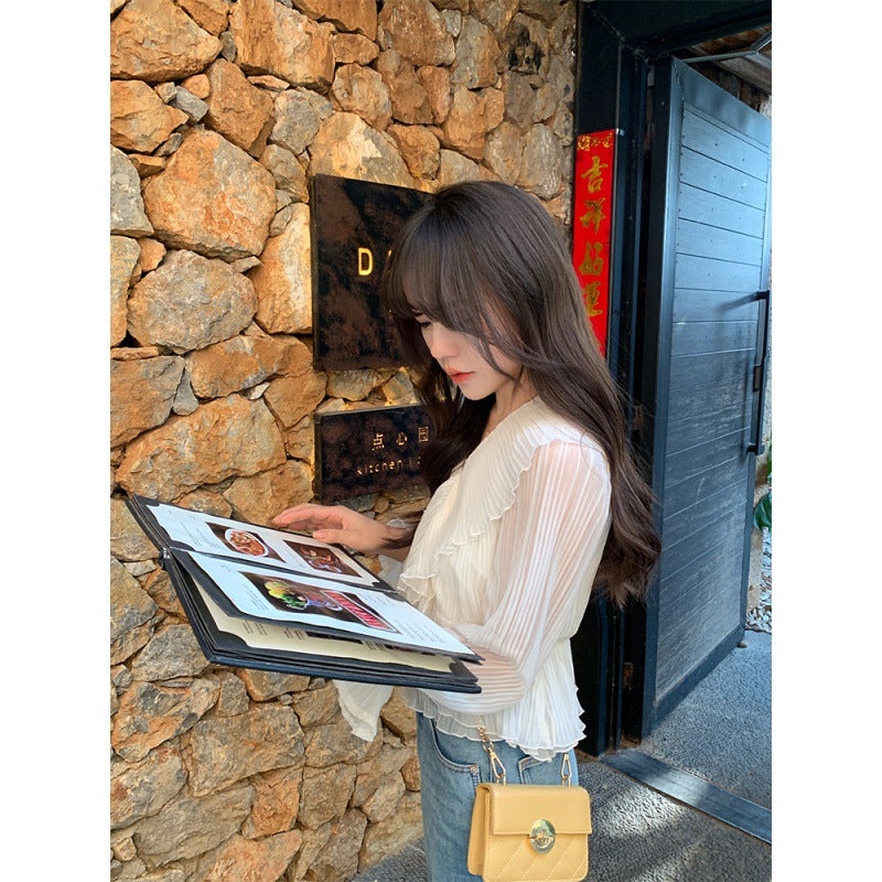 Small pleated design shirt women's gentle first love temperament ruffle edge long sleeve retro collar top