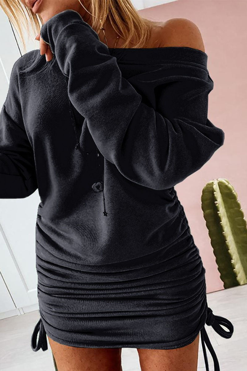 Street Solid Patchwork Frenulum O Neck Pencil Skirt Dresses(6 Colors)