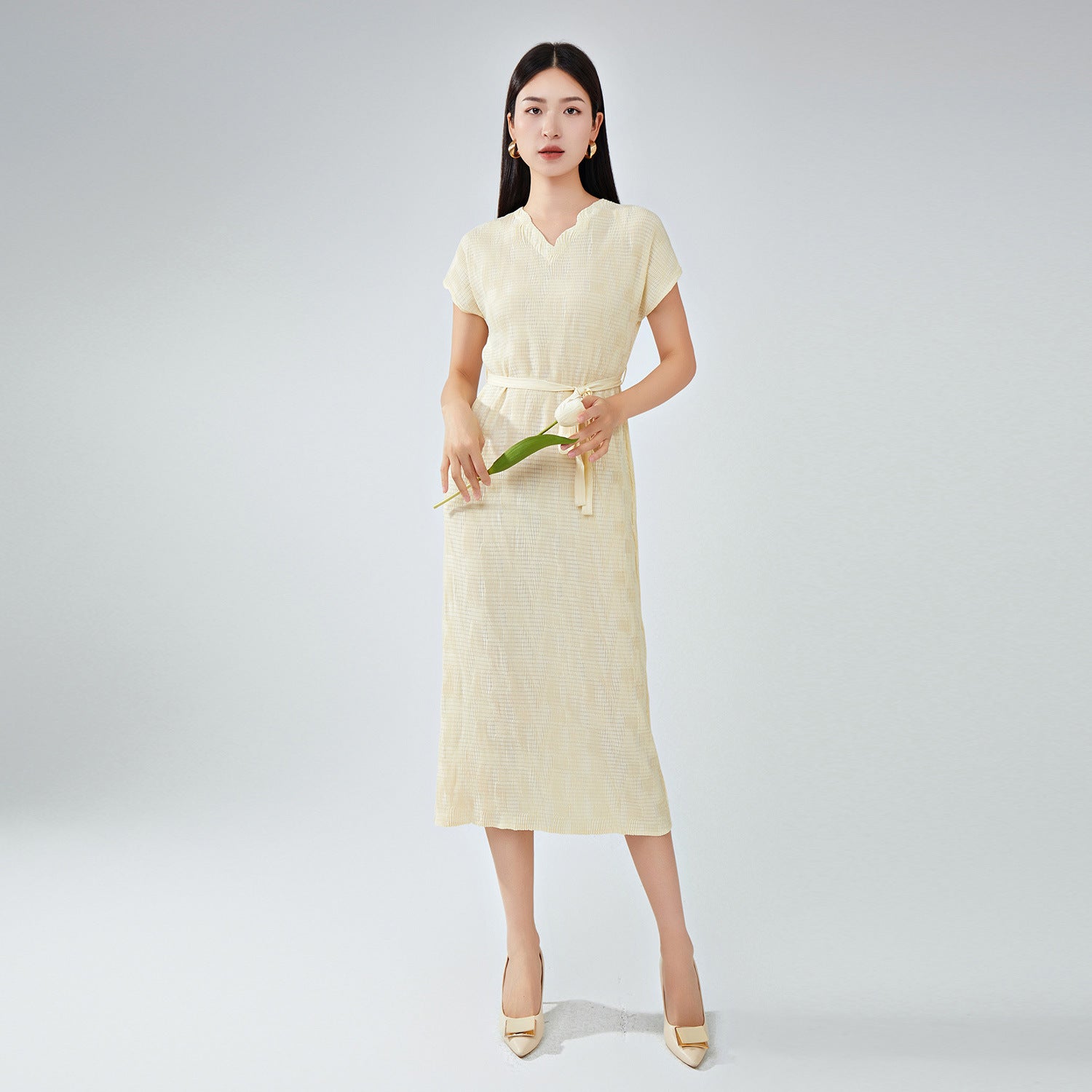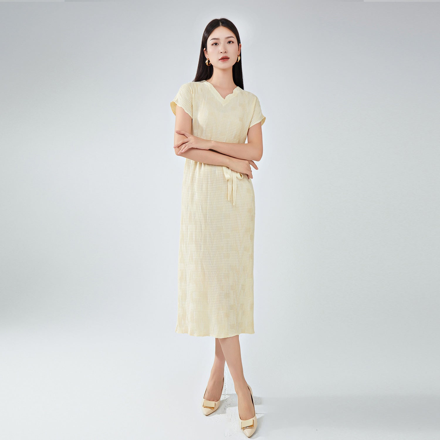 summer dress women's high-end new v-neck short-sleeved loose lace-up fashion temperament versatile medium and long dress