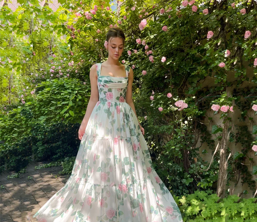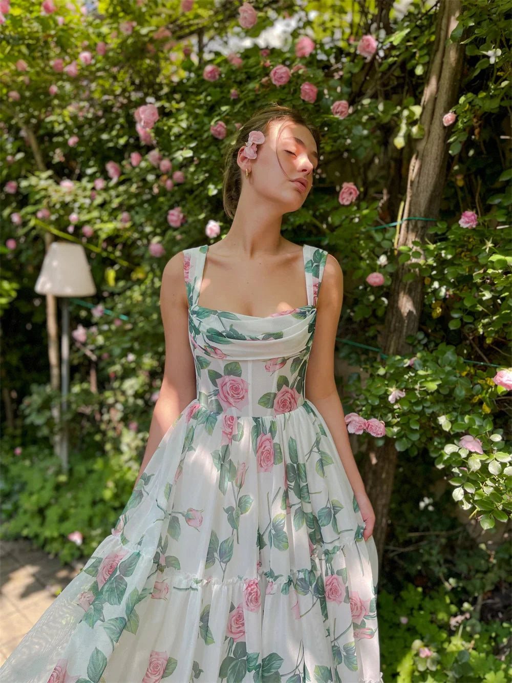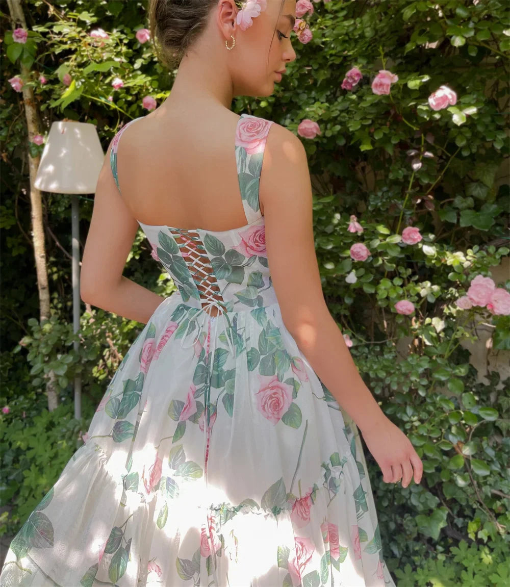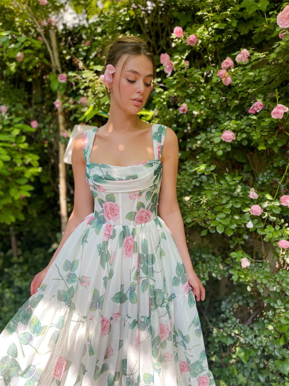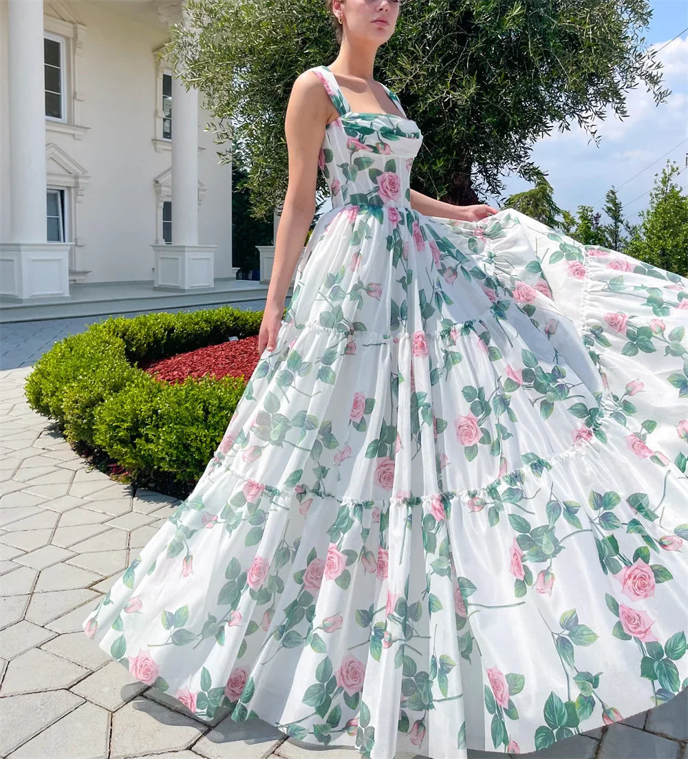 Sweet Flower A-line Vestidos De Noche Silk Chiffon Princess Sleeveless Prom Dress With Pocket