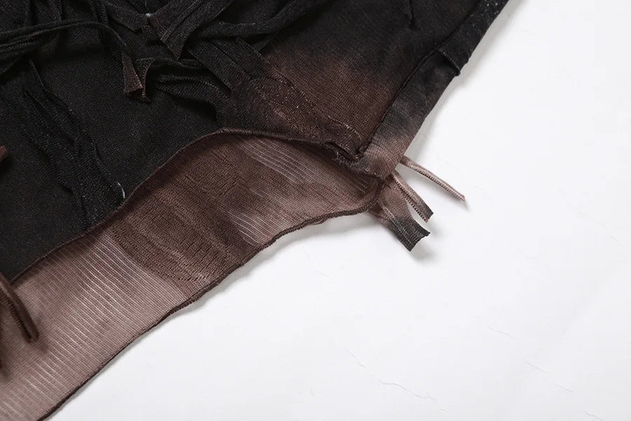 Tassel Vintage Gothic Hooded Midi Dresses Fairy Grunge Y2k Sexy High Split Dress Female Sleeveless Tie Dye Streetwear