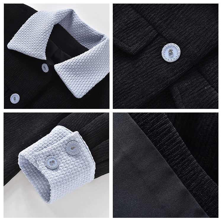 temperament wind single-breasted contrasting color splicing short coat women's autumn and winter retro black blazer K7151