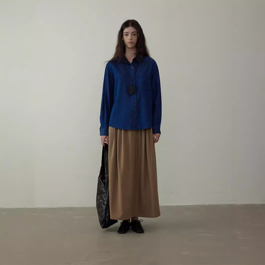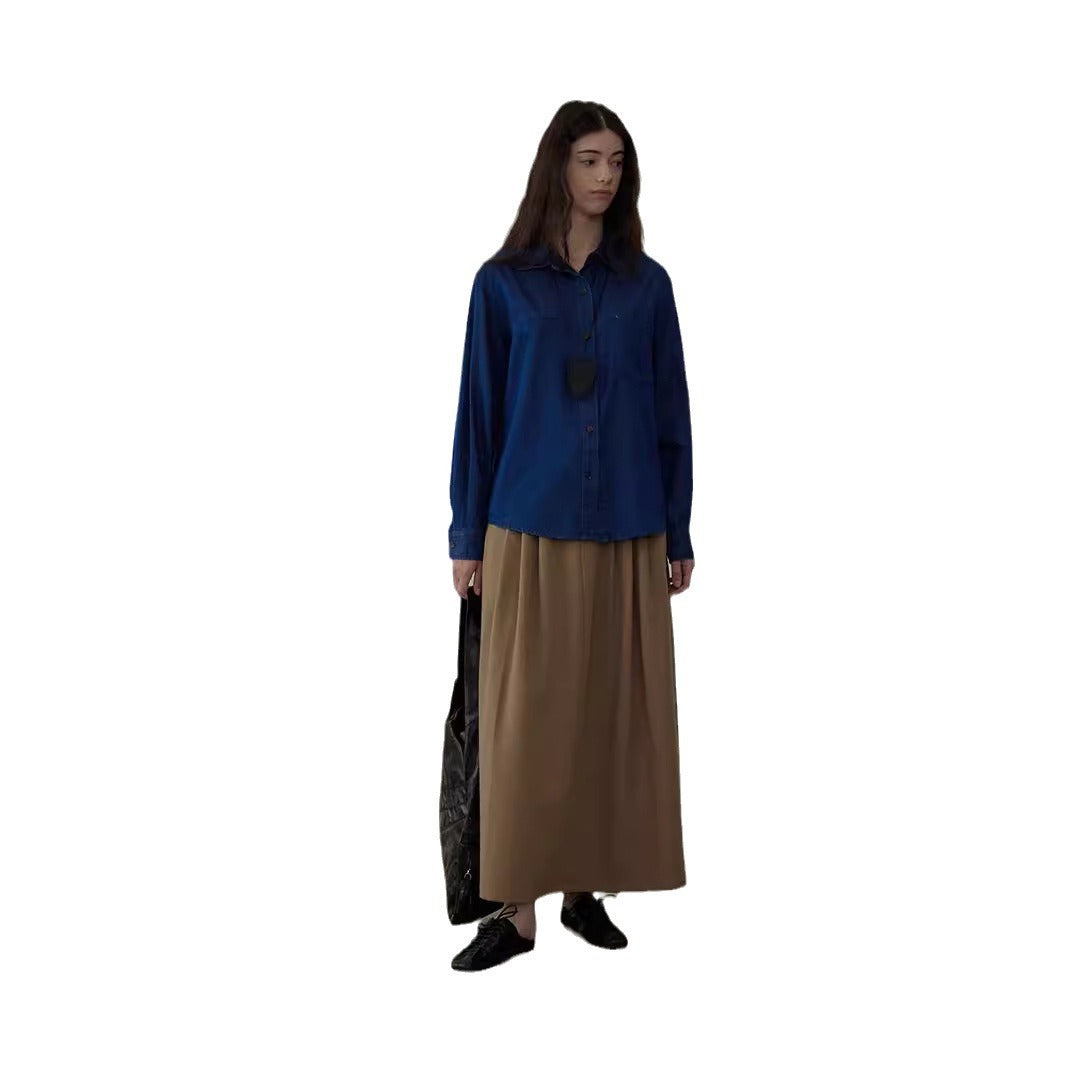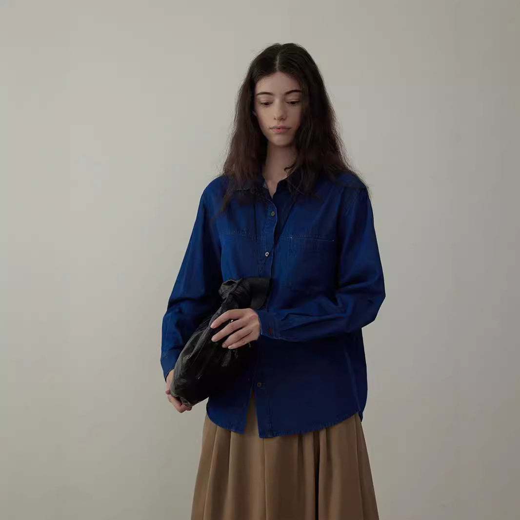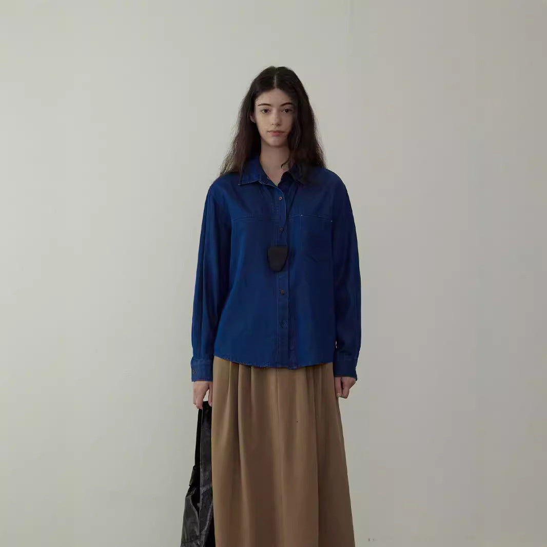2000s fashion Early Jane 24 Early Autumn New Simple Retro Style Distressed Loose All-Match Denim Shirt 2090