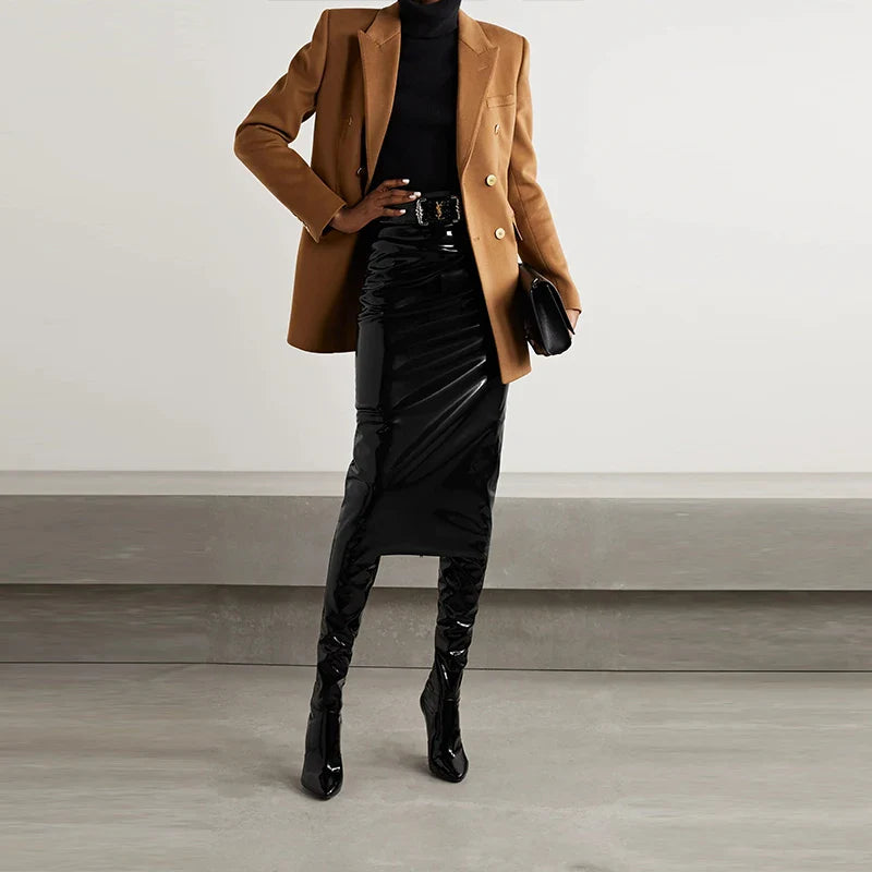 # Made from stretch patent leather, this skirt has a shiny look. The high waist and slim silhouette accentuate the curves of the hips.