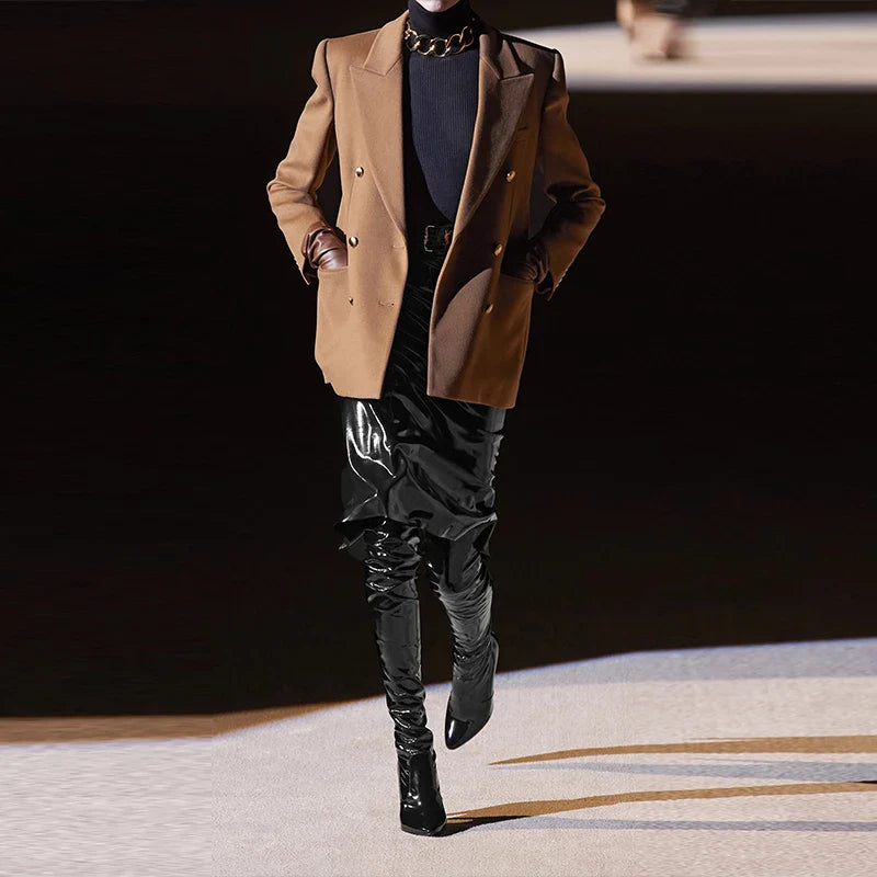 qgtao Women Patent Leather Full Zip Shiny Skirts Sexy Latex 3XL 4XL Plus Size Slim Skirt Lady High Waist Knee Length Midi Skirt Custom