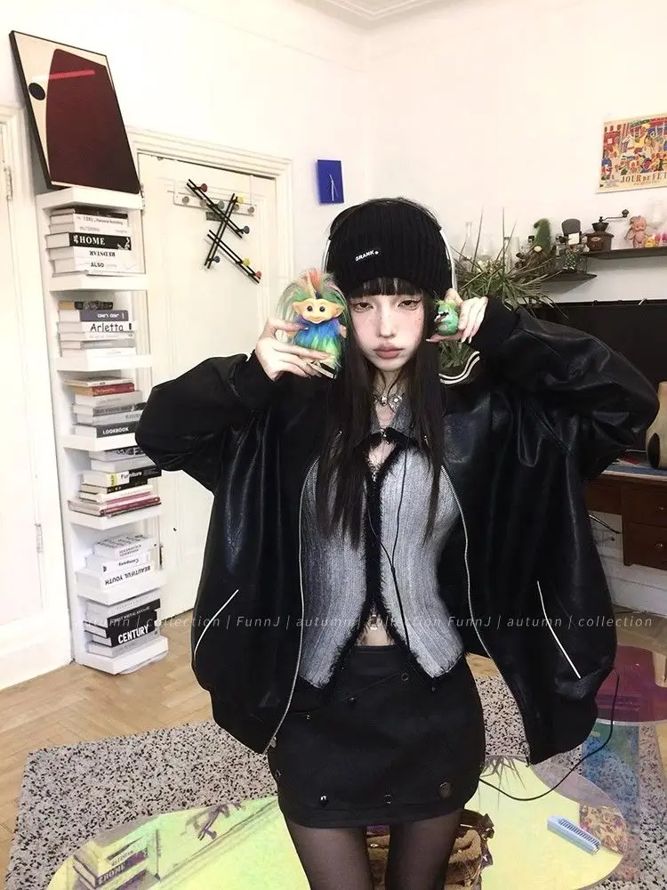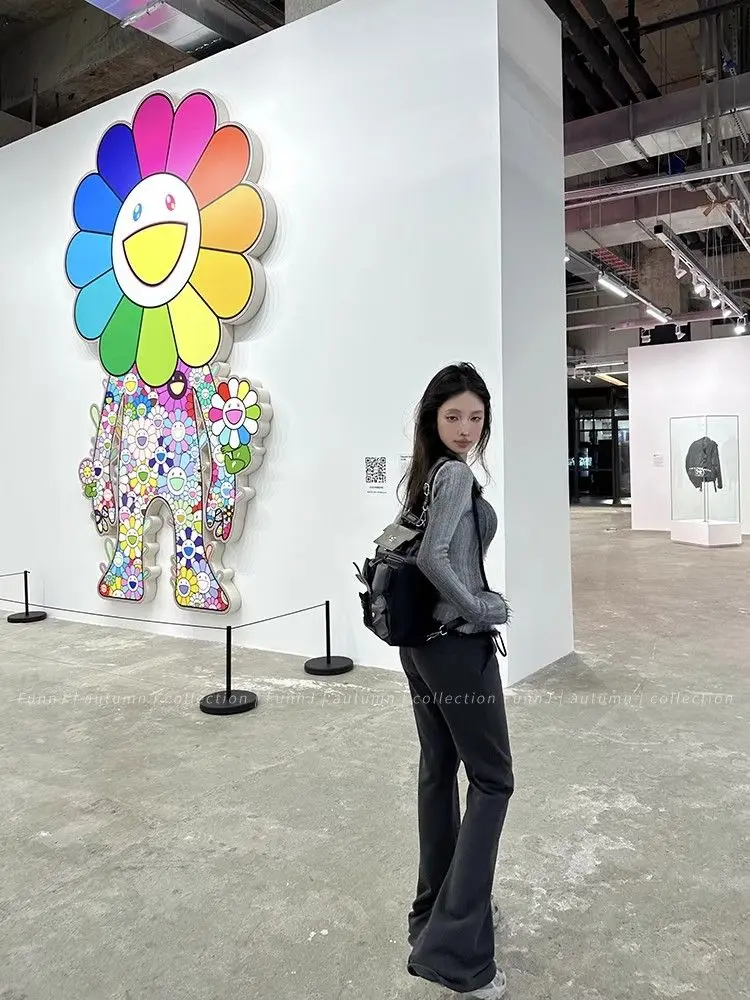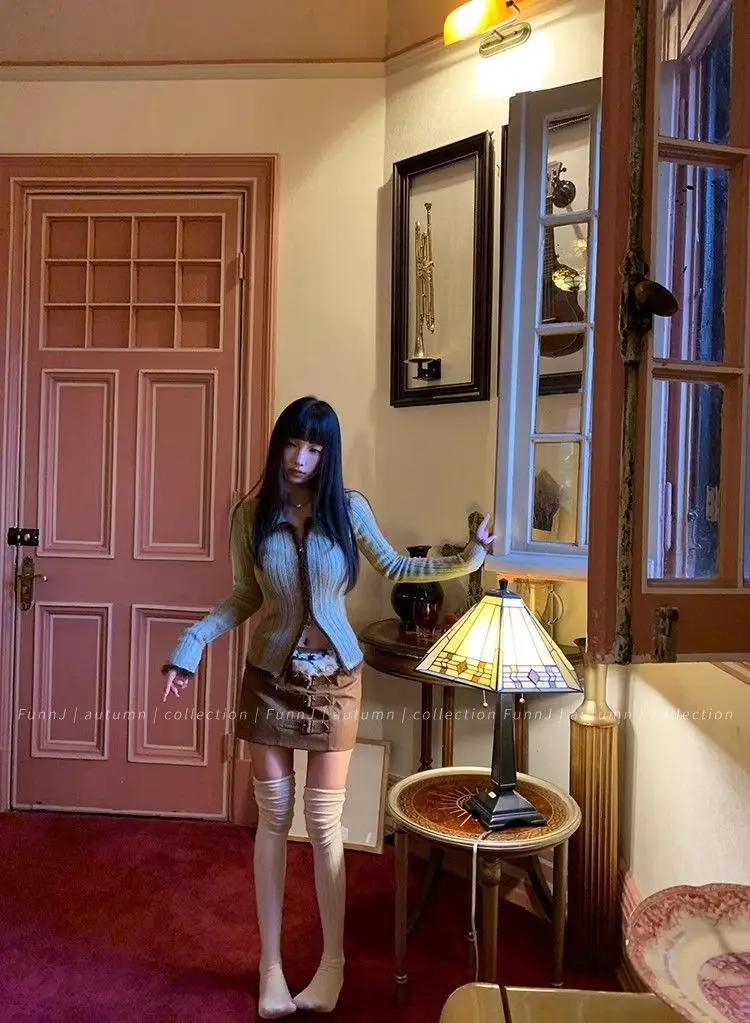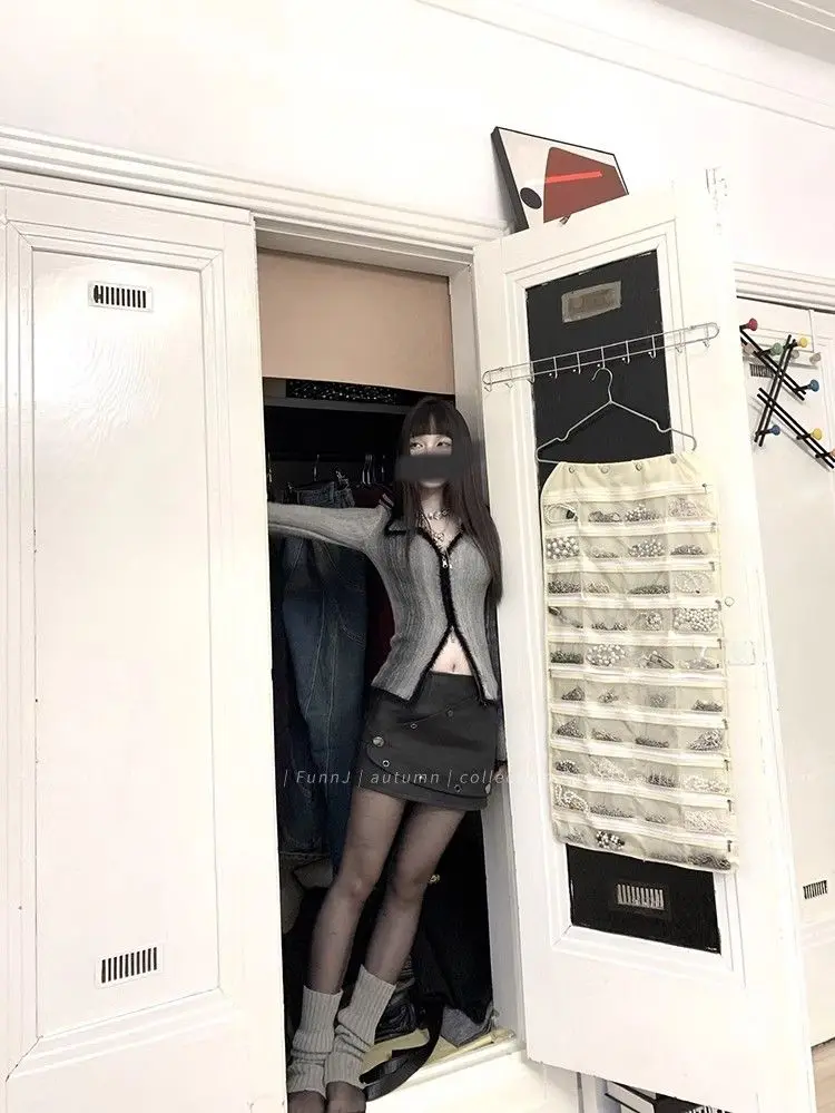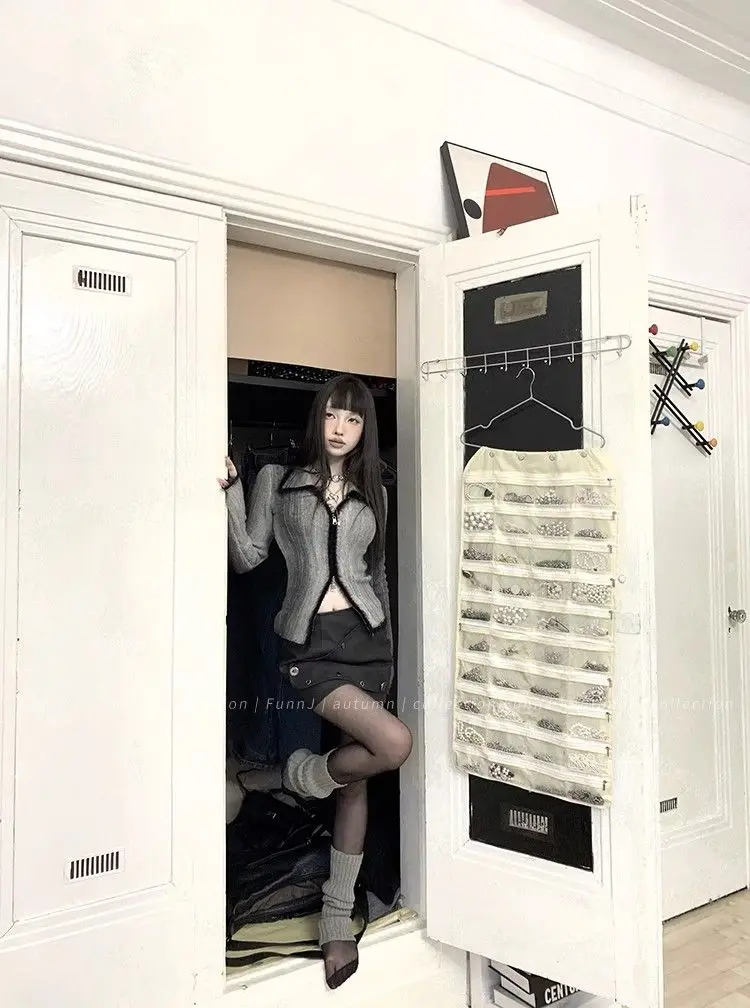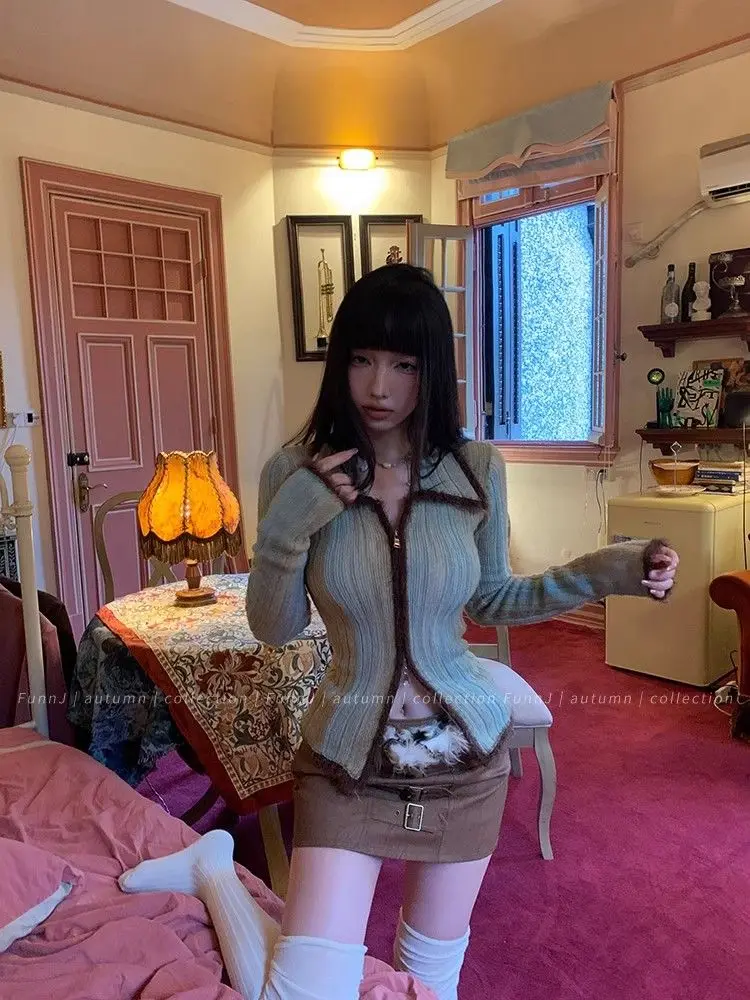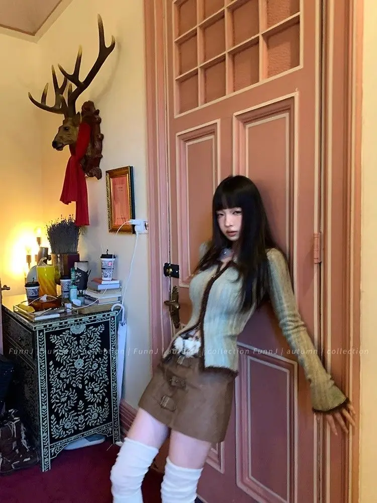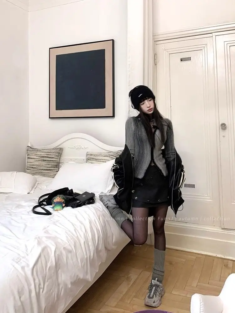 qgtao Y2K Grunge Gray Cropped Cardigan Women Harajuku Vintage Gradient Knitted Sweater Sexy Slim Autumn Winter Jumper 2000s