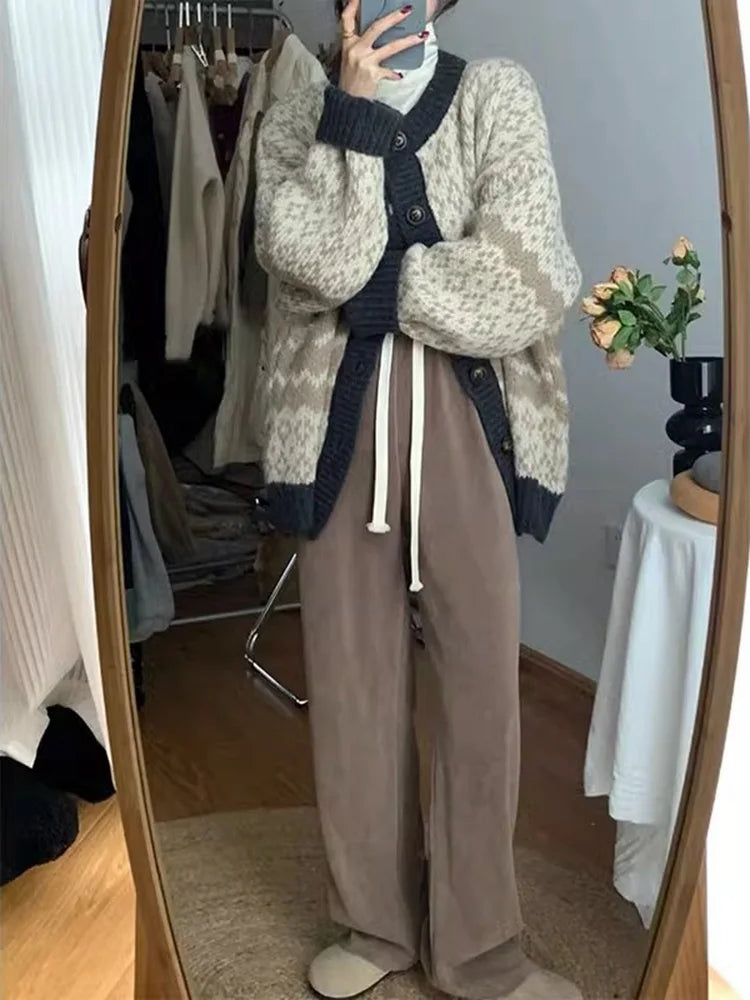Vintage Jacquard Button Knitted Women Sweater Fashion Office Lady Style Warm Sweater Cardigan Sweet Girls Retro Knitwear