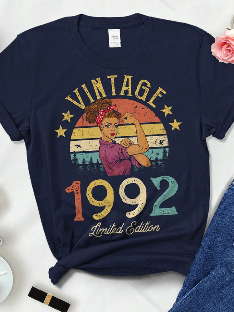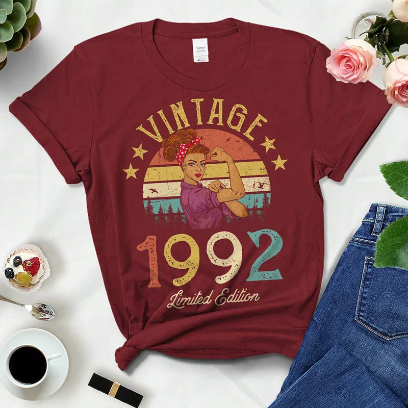 Vintage Retro 1992 Summer Fashion Outfits Women T Shirts 32nd 32 Years Old Birthday Party Ladies Clothes Tshirt Causal Clothes