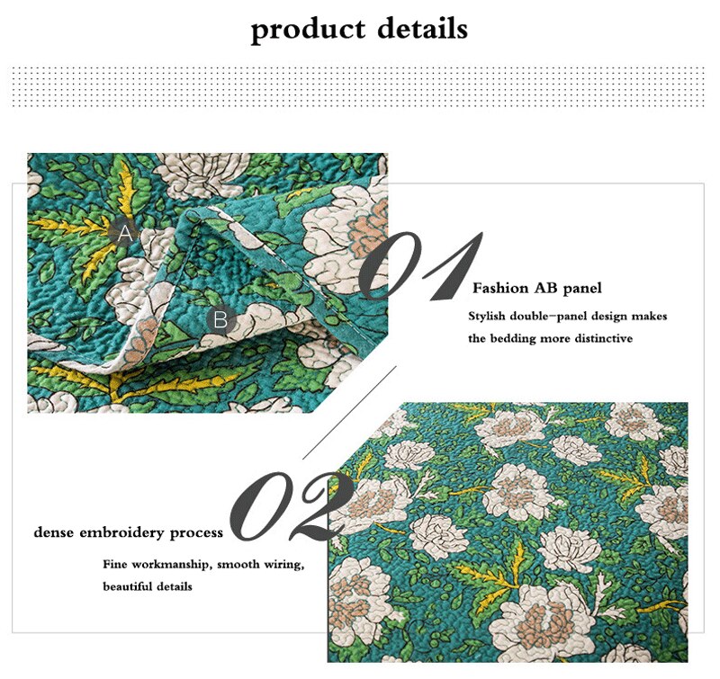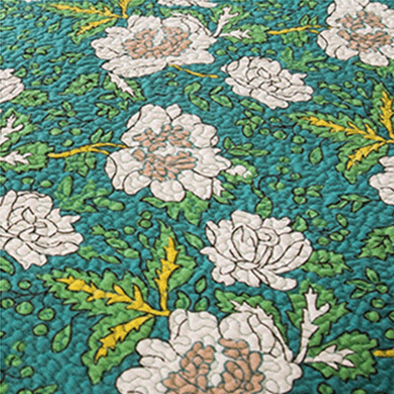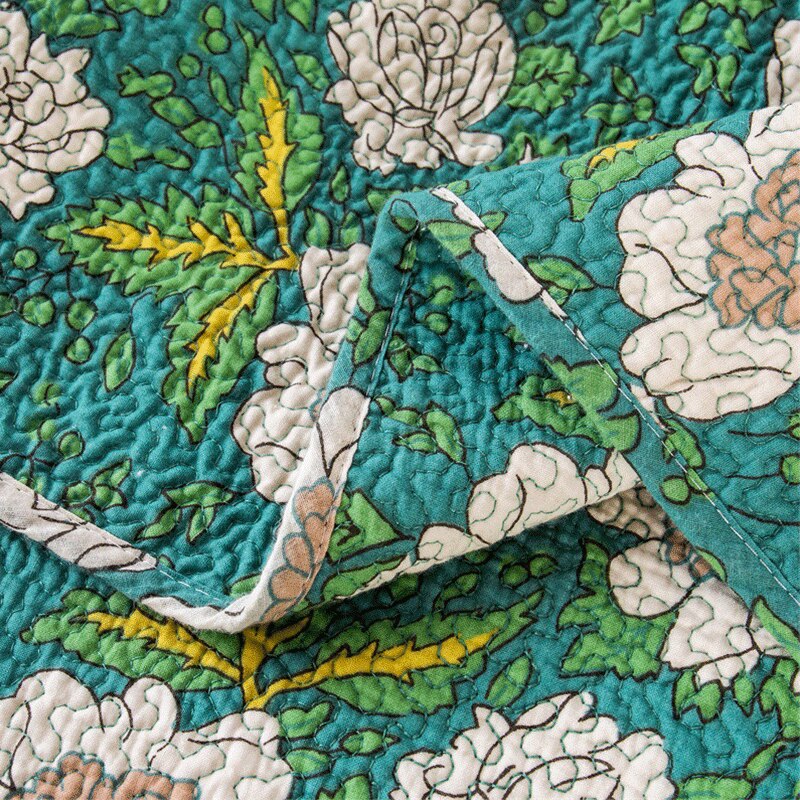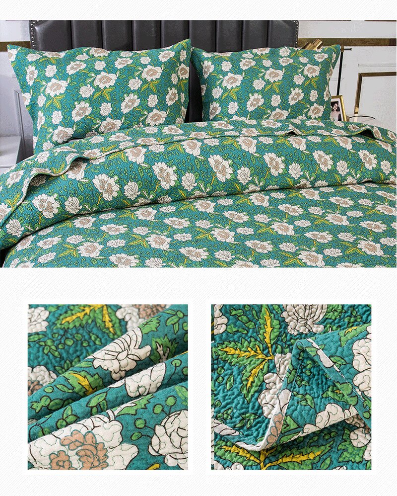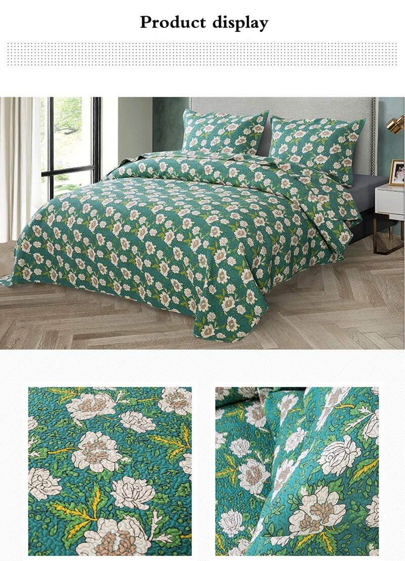 Yeknu Double Bed Cotton Green White Flowers 3pcs Printed Quilted Quilt Pillowcase Free Shipping