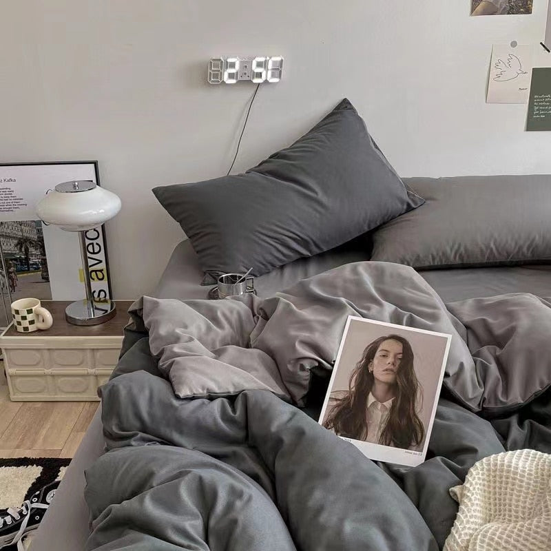 Yeknu Ins Wind Four-Piece Bed Set Product Washed Cotton Sheet And Quilt Set Three-Piece Quilt Cover Dormitory Bedding