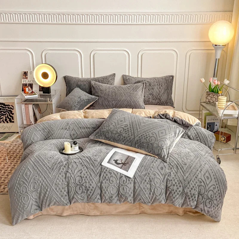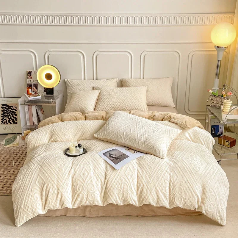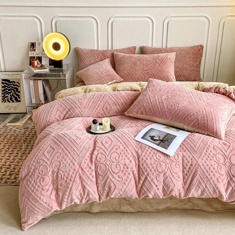Yeknu Luxury jacquard velvet Bed linen winter Bedding set Microfiber Duvet cover Quilt bed cover full set bed sheets set pillow cover