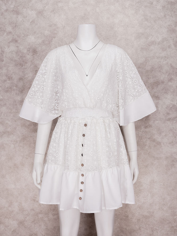 Boho White Lace Mini Dress