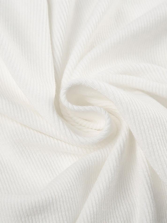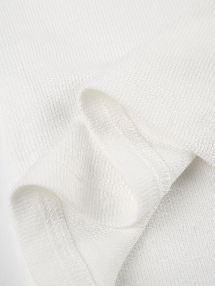 Bow Accent Lace-Trim Half-Button Plain Slim-Fit Crop Top