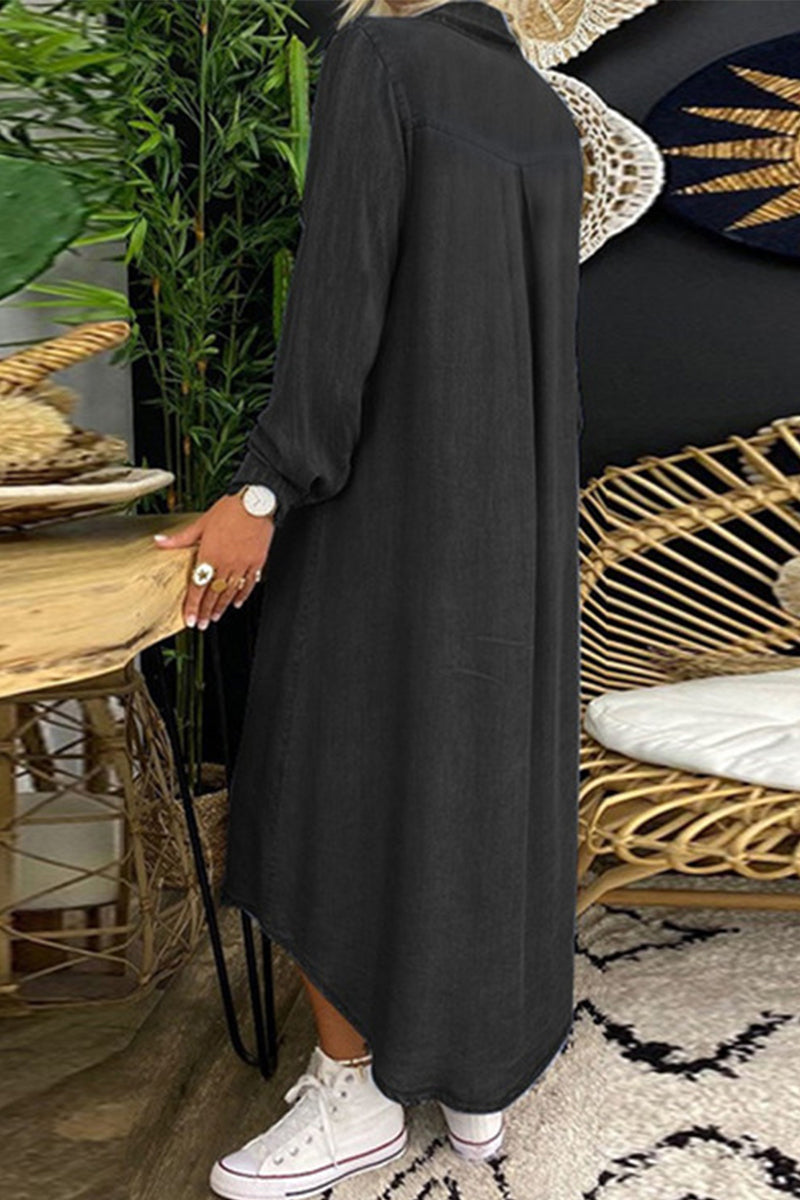 Casual Street Solid Patchwork Shirt Collar Long Sleeve Loose Denim Dresses(3 Colors)
