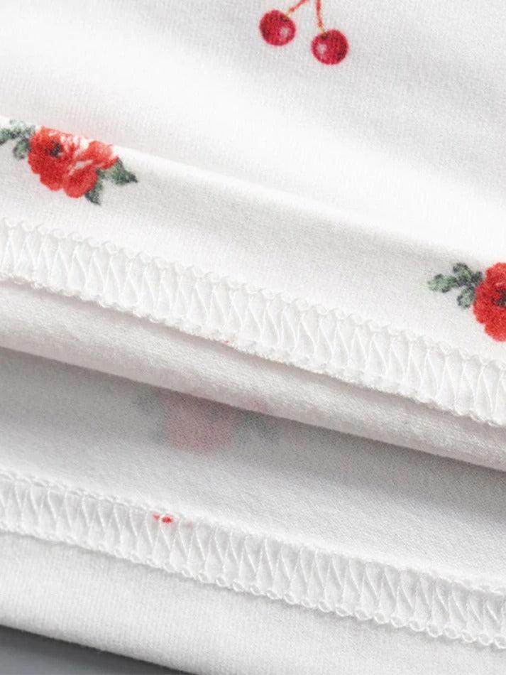 Girlish and Sweet Print: The cherry flower print gives this top a girlish and sweet vibe, making it a great choice for those who want to add a touch of femininity to their look.