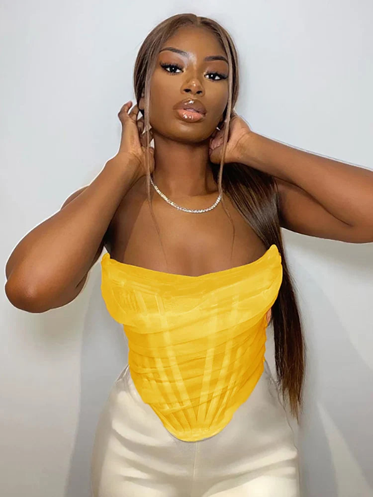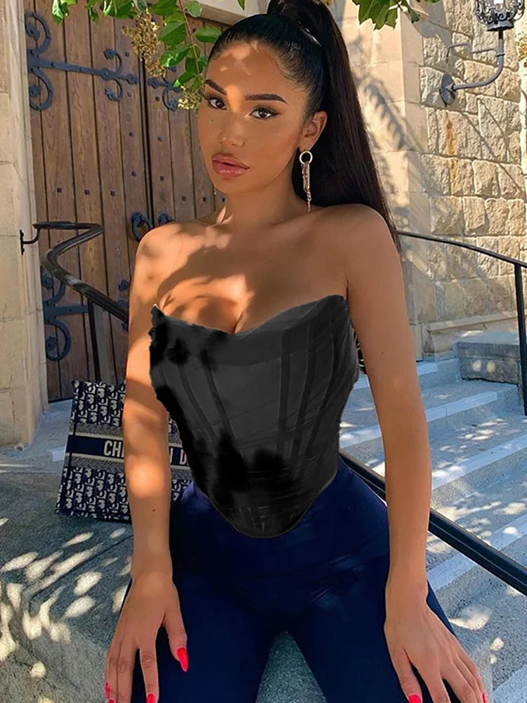 Colysmo Mesh Crop Top Women Summer Tops Sexy Party Club Wear Off Shoulder Corset Top Solid Color Casual Streetwear Tube Top
