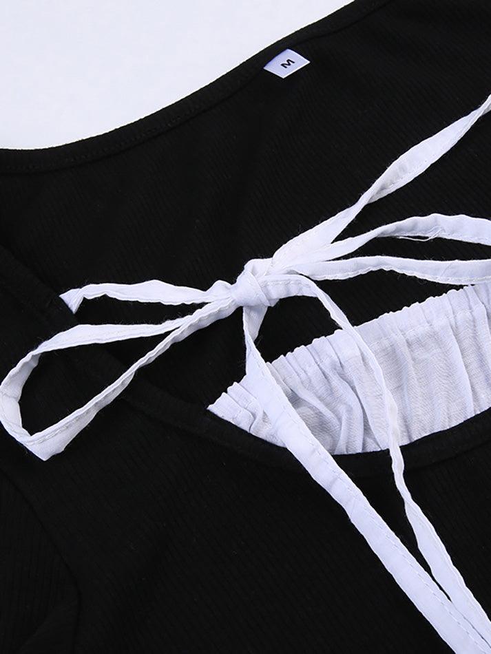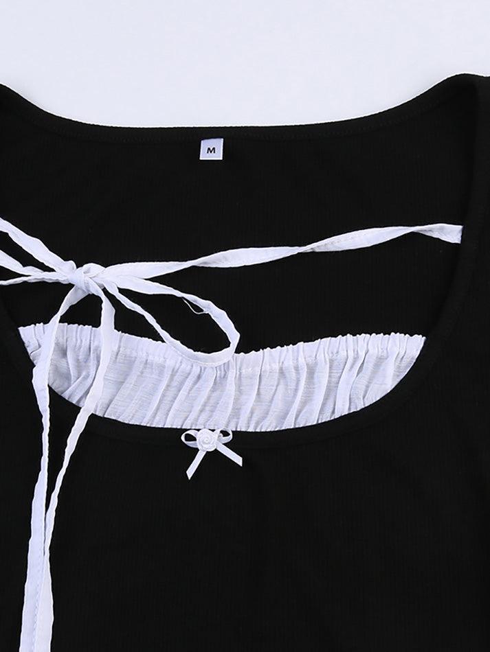 Contrast Stitching Short-Sleeved Square Collar Slim Top