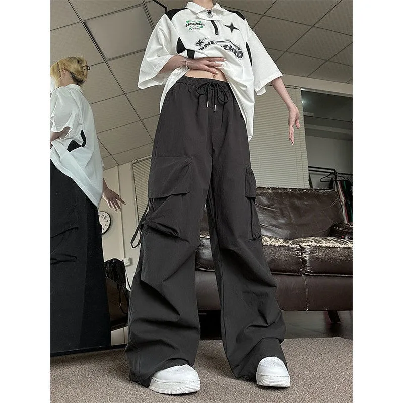 Deeptown Y2k Harajuku Cargo Parachute Pants Women Black Pleated Korean Fashion Streetwear Trousers Baggy Hippie Vintage CasualUSD 24.15 ~ USD24.15/piece