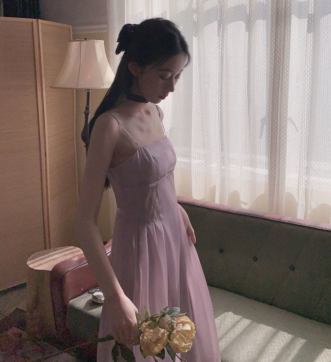 Elegant Spaghetti Strap White Fairy Dress Women Korean Style Sweet Purple Midi Dress Romantic Holiday Beach Summer Dresses 2021