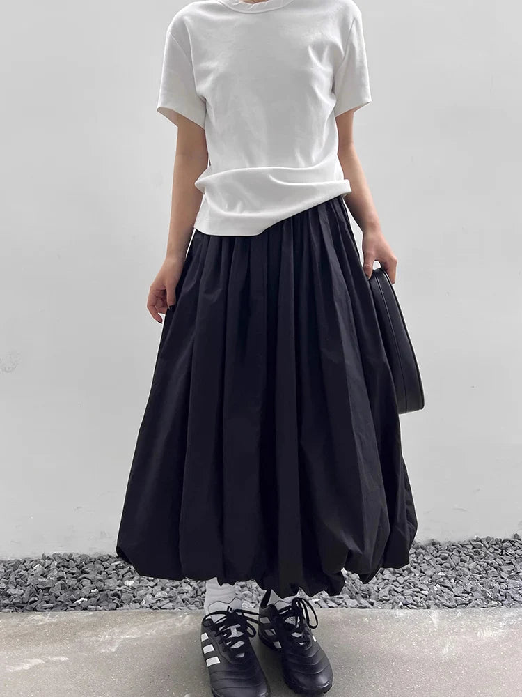 qgtao Long Skirt Women Elegant Solid Elastic Waist A-line Vintage Korean Fashion Loose Balloon Maxi Skirt Casual Streetwear