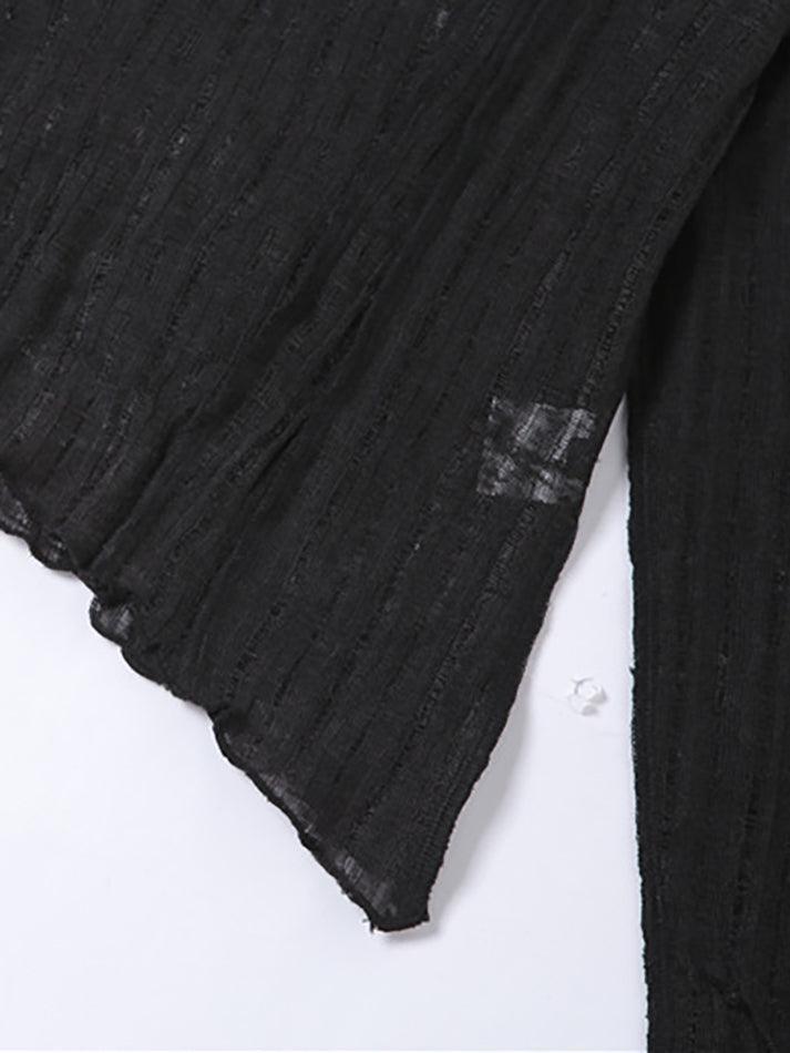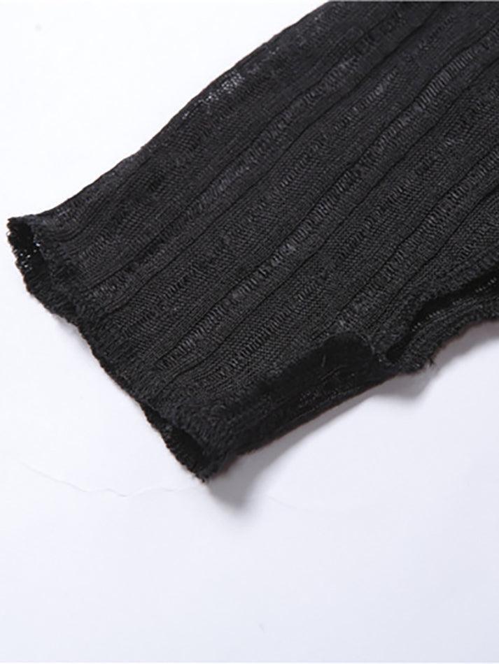 Description: Elevate your style with our trendy cutout long sleeve top. Perfect for street fashion enthusiasts, this top features a stylish slash neck and a slim fit that flatters your figure. Made with a blend of polyester and spandex, it offers a comfortable and stretchy feel. The thumb hole detail and lettuce edge design add a unique touch to this must-have wardrobe staple. Get ready to turn heads and make a bold statement with this chic top.