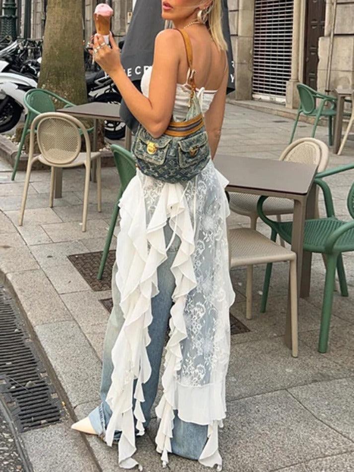 Irregular Ruffled Hem: The irregular ruffled hem of this cami top is not only stylish but also girlish.