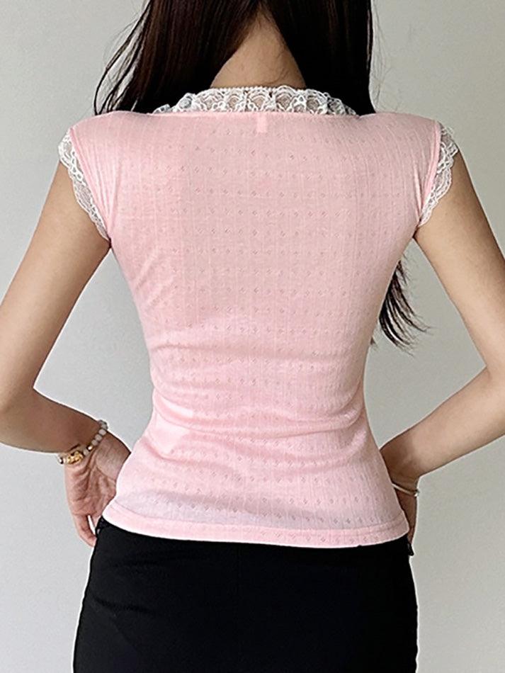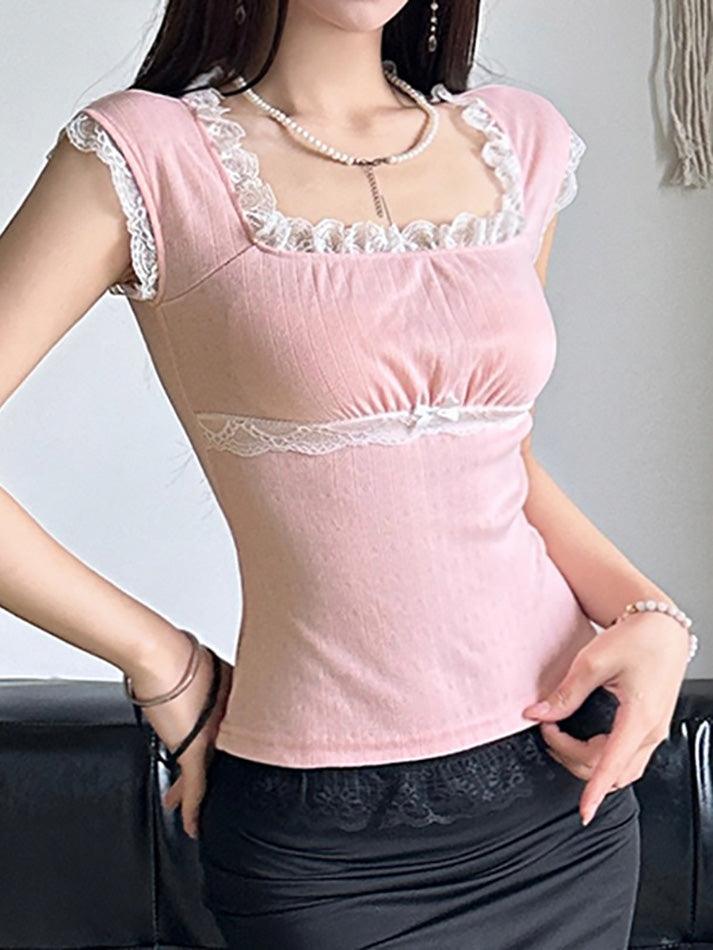 Lace-Trim Bow Accent Slim-Fit Crop Top