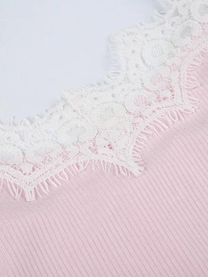 Delicate Lace Trim: The top features a delicate lace trim design that adds a feminine and flirty touch.