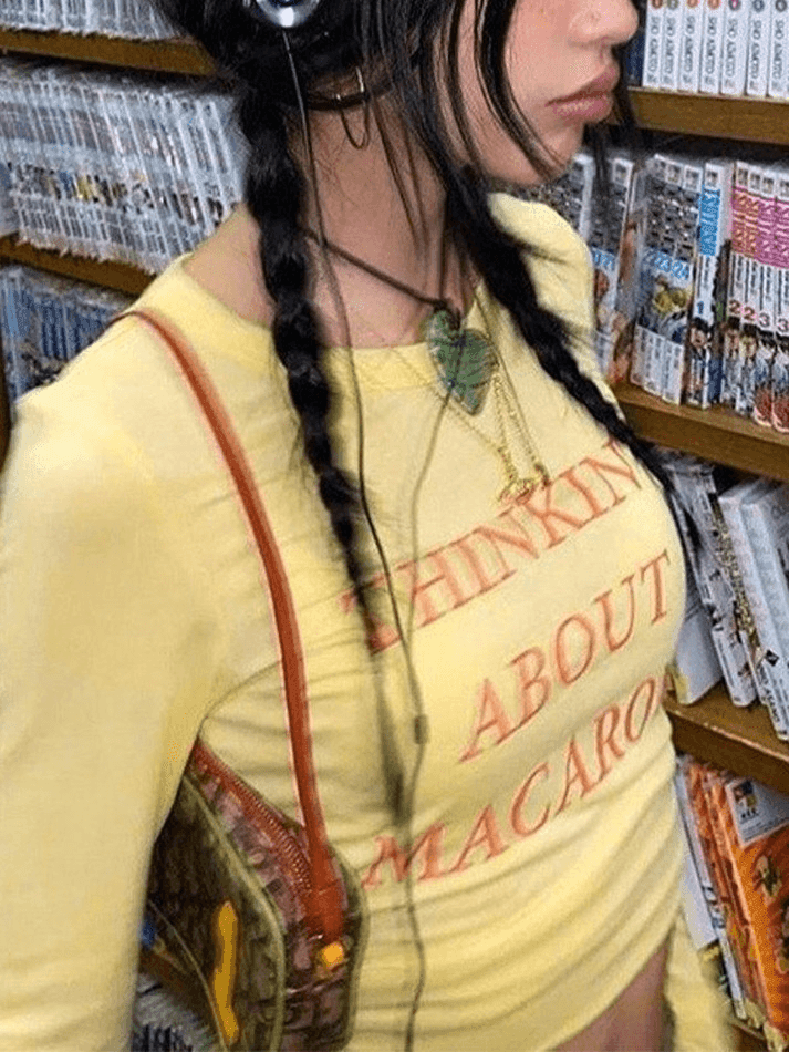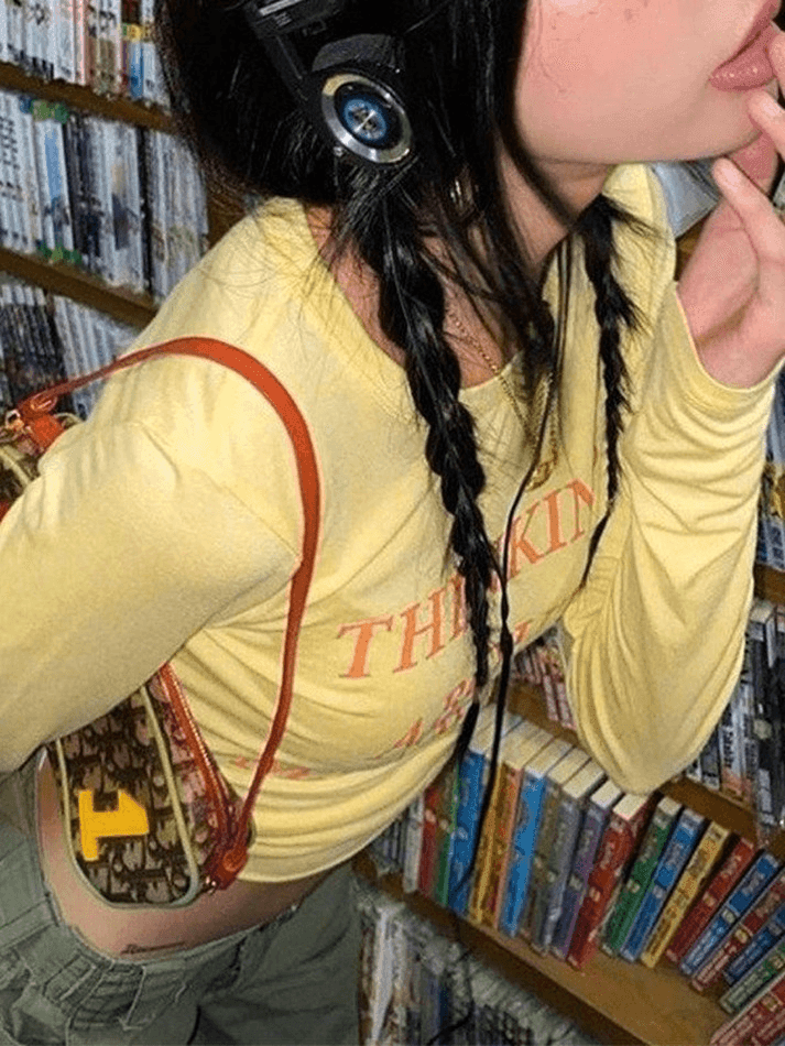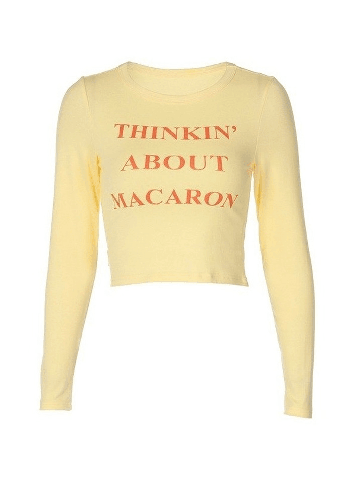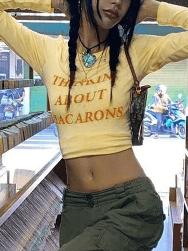 Description: Make a statement with our Cute Letter Print Crop Top. This trendy top features a stylish letter print design that adds a touch of personality to your outfit. Made with a comfortable blend of cotton and spandex, it offers a slim fit that flatters your figure. The crew neck and long sleeves make it perfect for any casual, street, Y2K, sweet, or preppy look. Stand out from the crowd with this fashionable crop top.