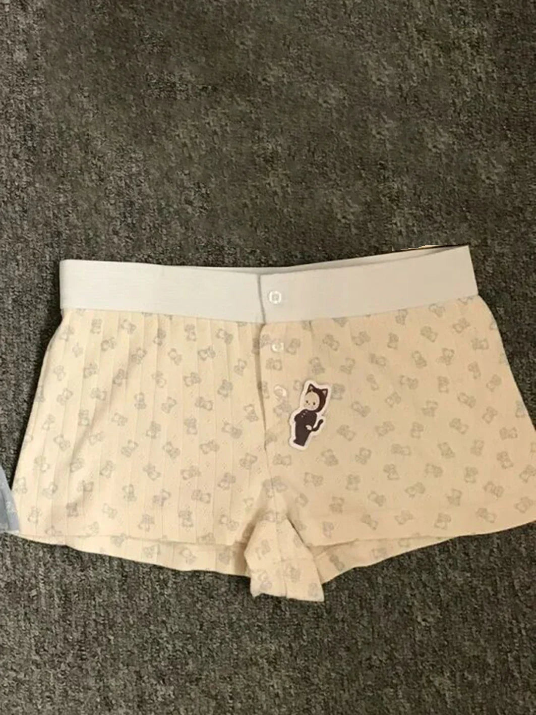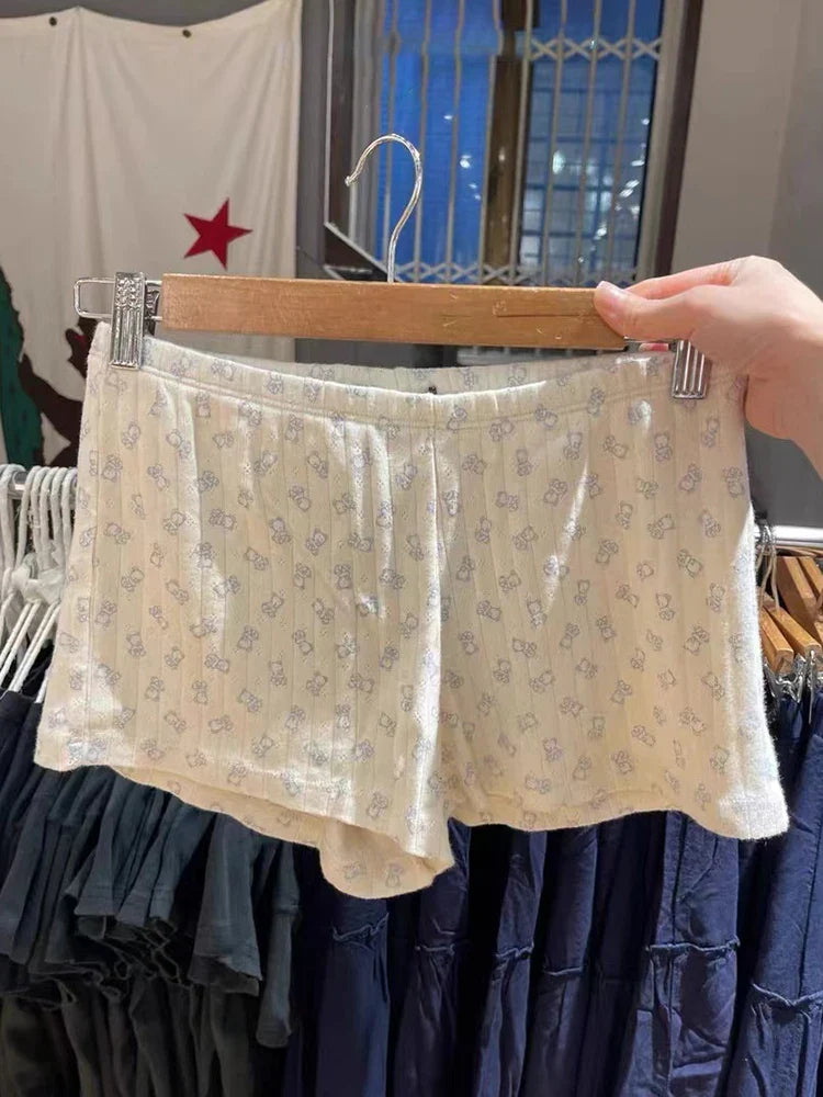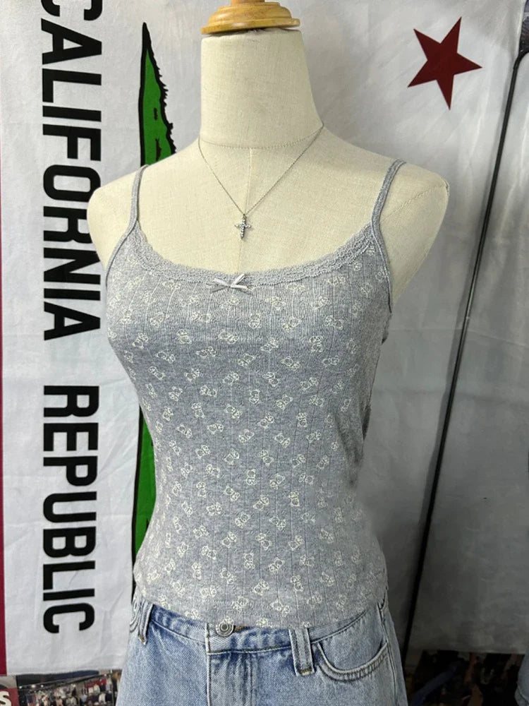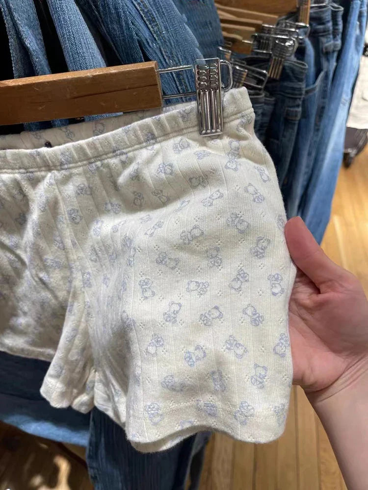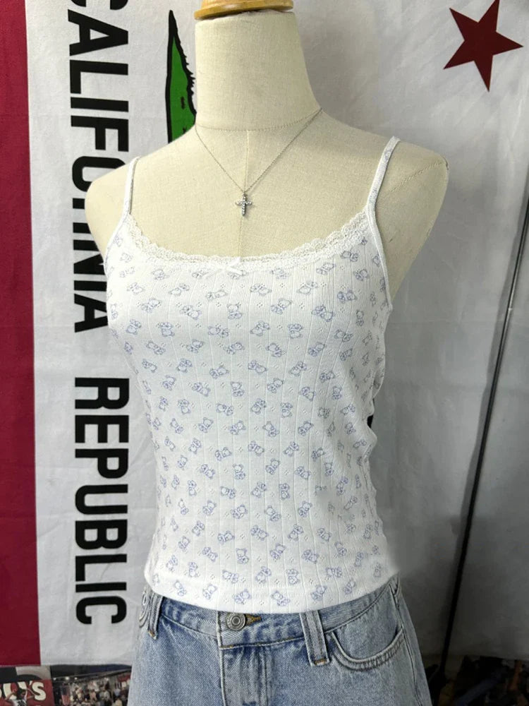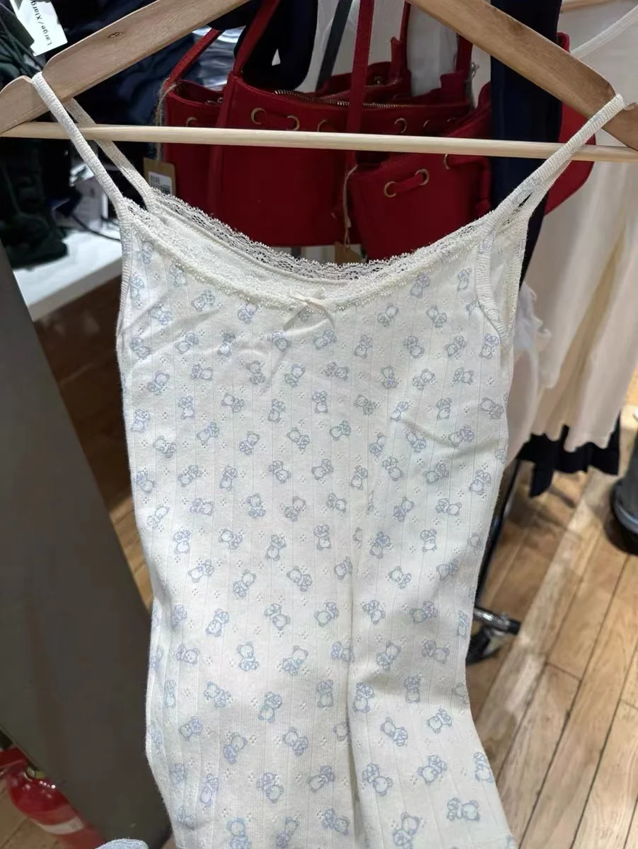 Little Bear Eyelet Cotton Vest Shorts Set Summer Sweet Bow Lace Camis Tops And Shorts Vintage Cute 2 Piece Sets Women Outfit New