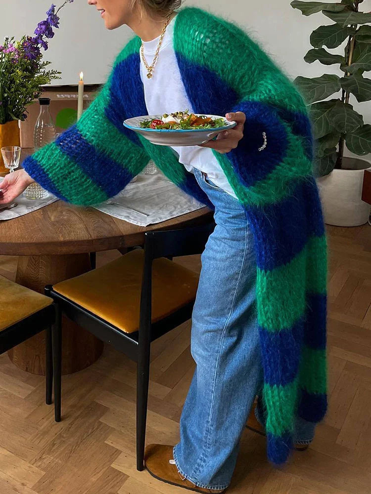 qgtao Long Knitted Cardigan Women Casual Striped Sweater Autumn Winter Vintage Loose Maxi Cardigan Lady Elegant Street Jacket Knitwear