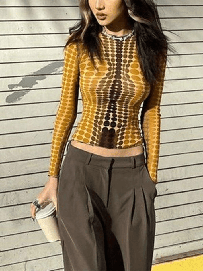 Description: Unleash your inner fashionista with our Polka Dot Dreams Crop Top. This trendy top features a charming dot pattern that adds a touch of whimsy to any outfit. Designed for the modern woman, it boasts a slim fit to accentuate your curves and a crew neckline for a classic look. Made from a blend of polyester and spandex, it offers a comfortable and stretchy feel. Whether you're hitting the streets or chilling with friends, this crop top is the perfect choice. Get ready to turn heads and make a bold statement with our Polka Dot Dreams Crop Top!