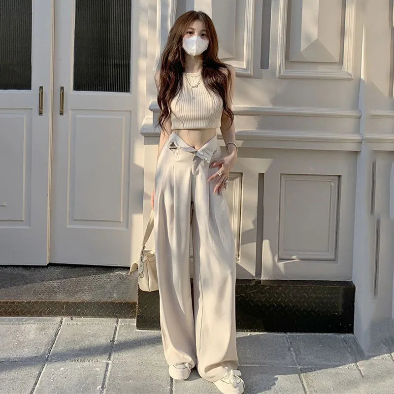 Lucyever High Waist Wide Leg Pants Women Vintage Streetwear Baggy Floor-Length Pants Spring Autumn Korean Style Casual Trousers