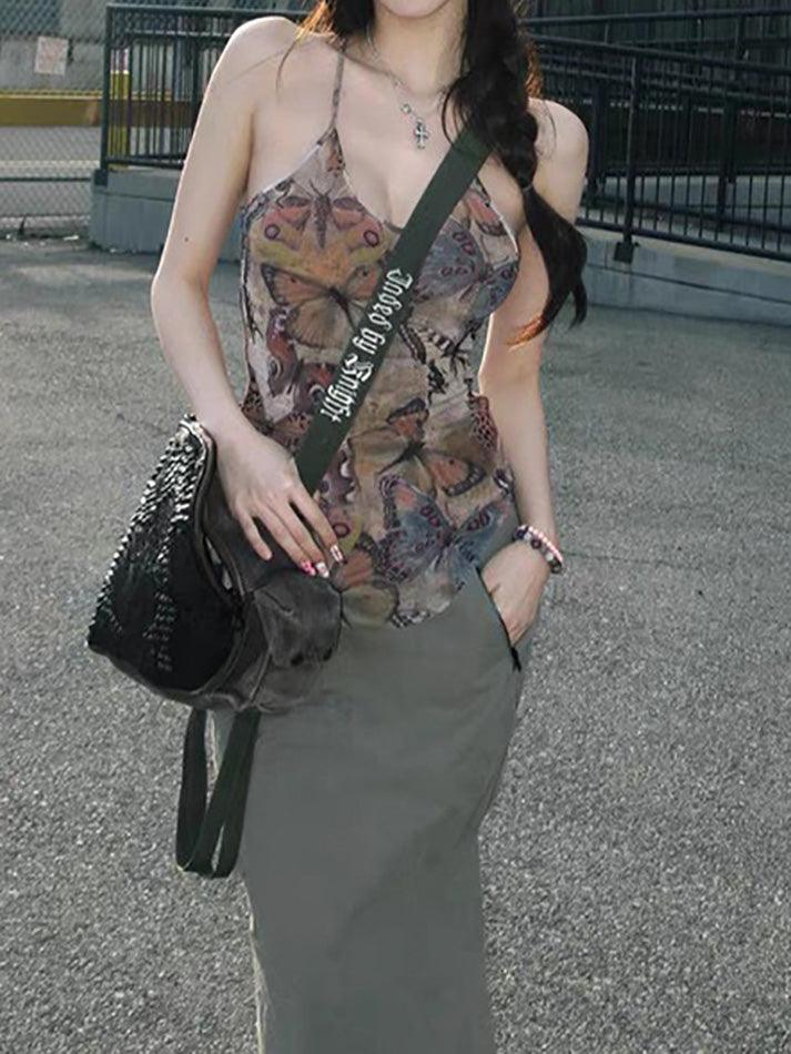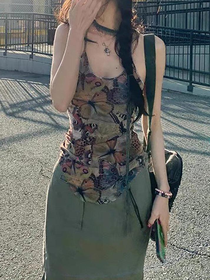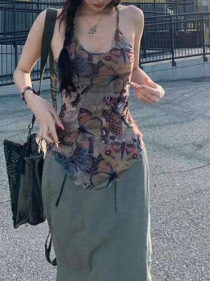 Mesh Butterfly Print Slim Fit Cami Top
