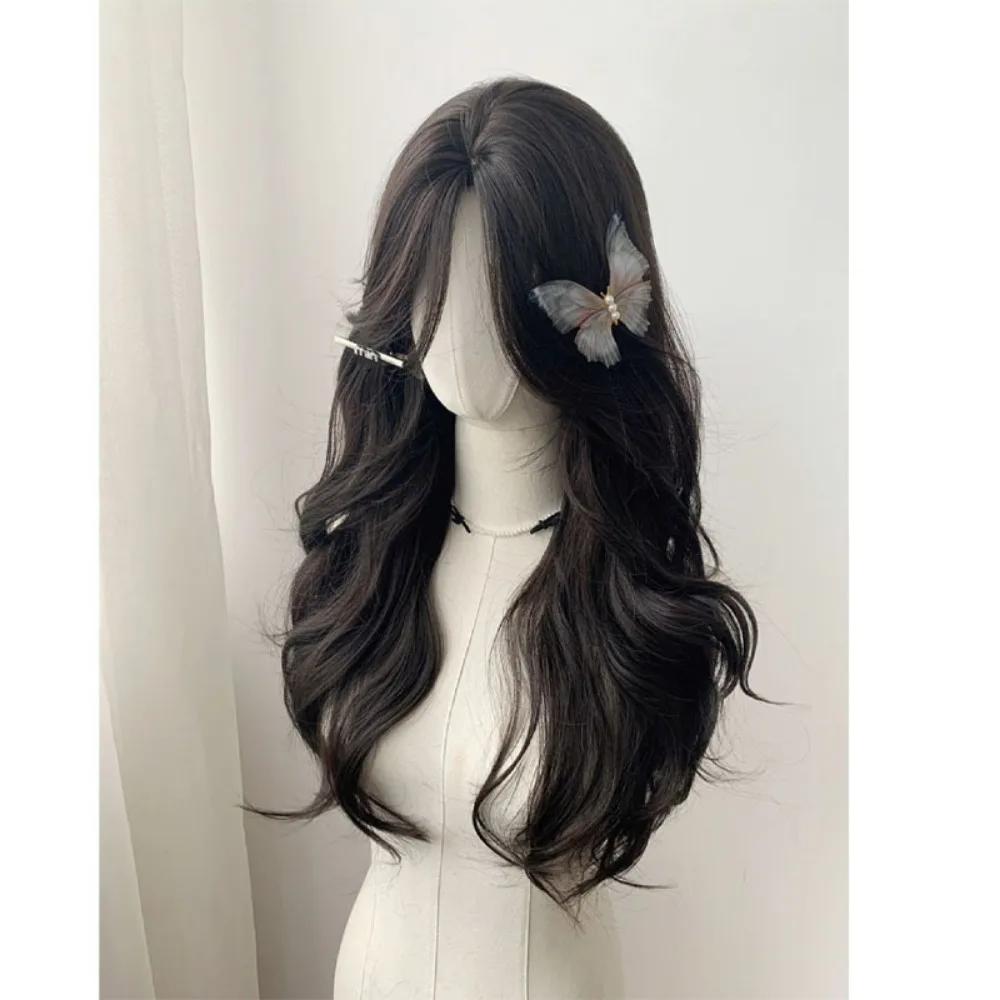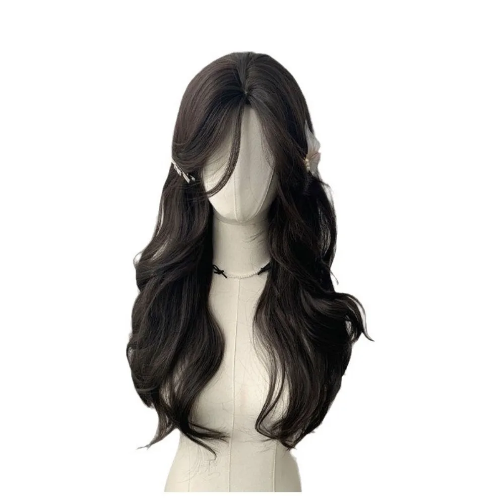 OKLULU - Black Wig for Women Natural Center Parting Eight Bangs Long Curly Hair Natural Hair Cosplay Wig for Daily Use Lolita 가발